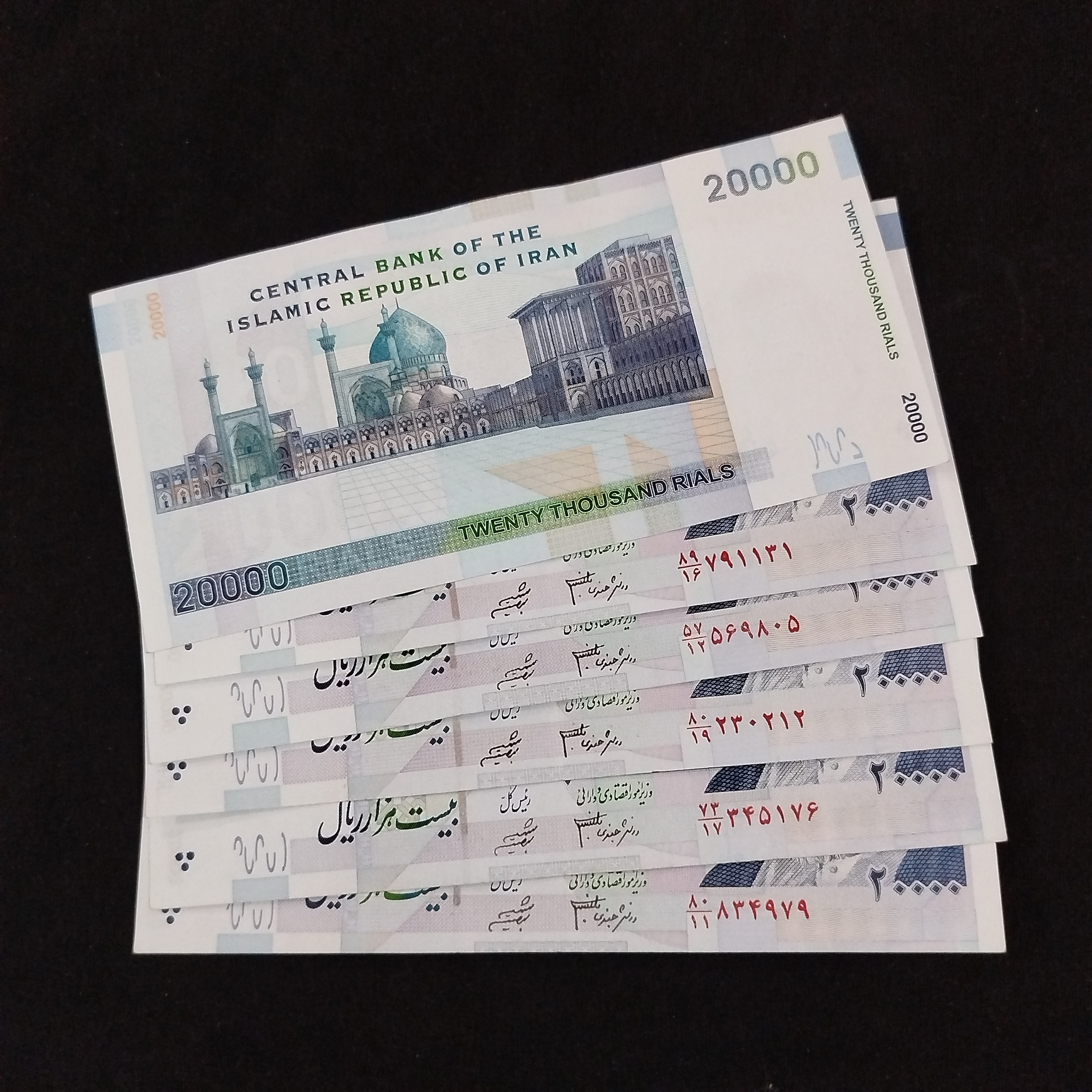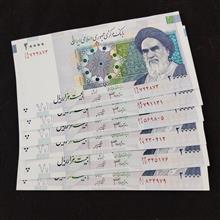 6 برگ اسکناس 20000 ریالی امام شیبانی پشت نقش جهان