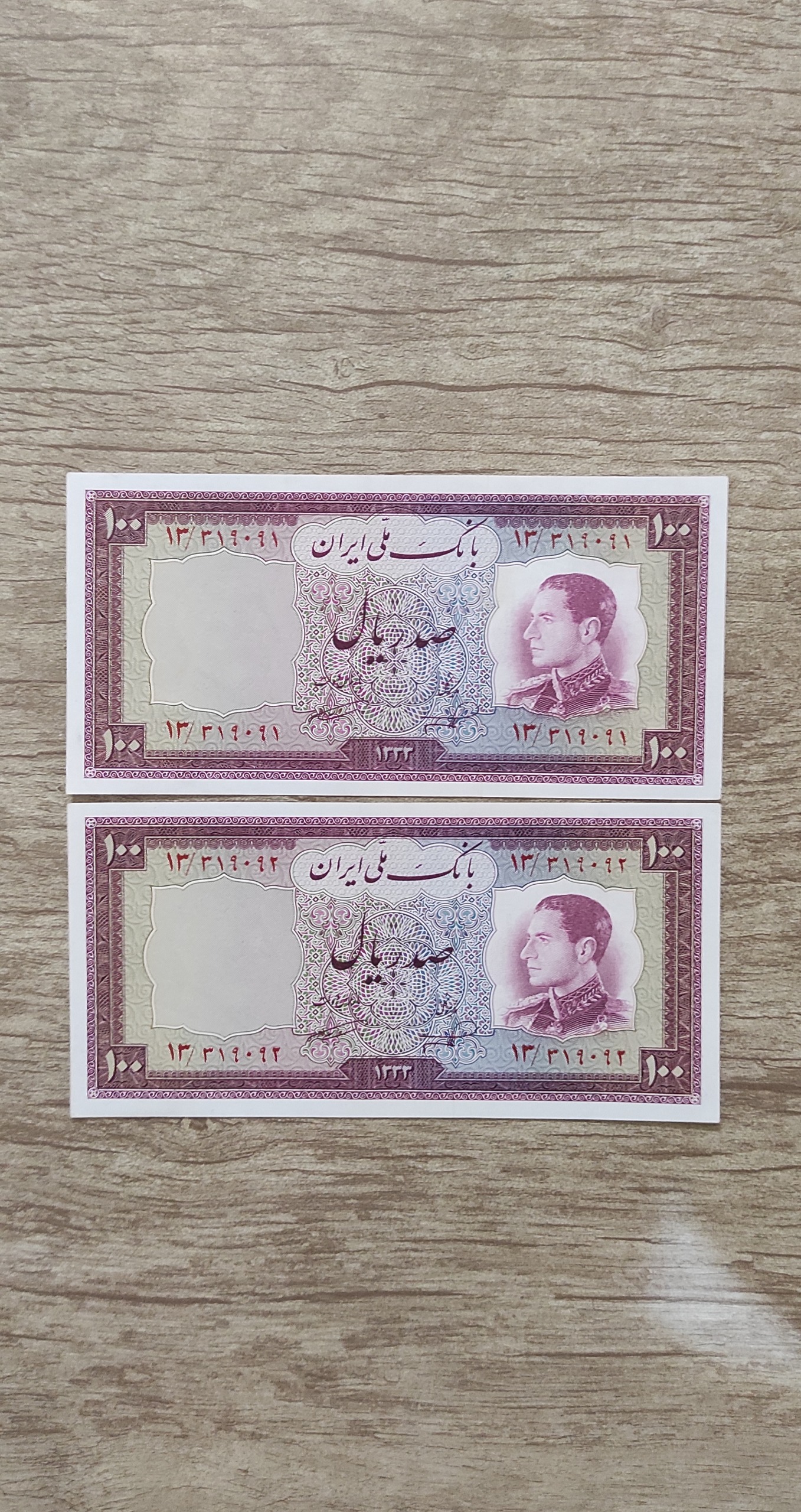 جفت اسکناسصدریالی نیم رخ باشماره عالی بانکی