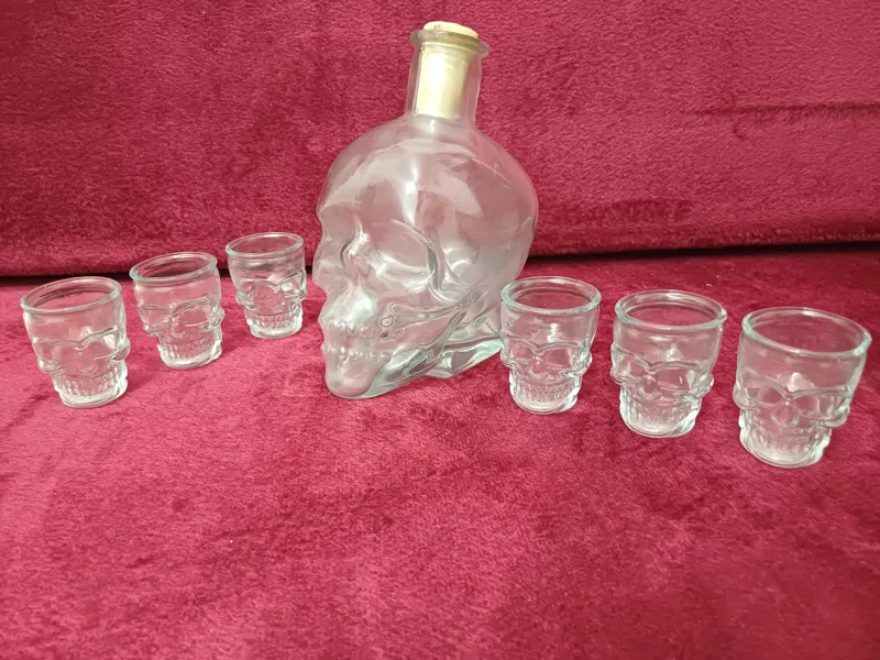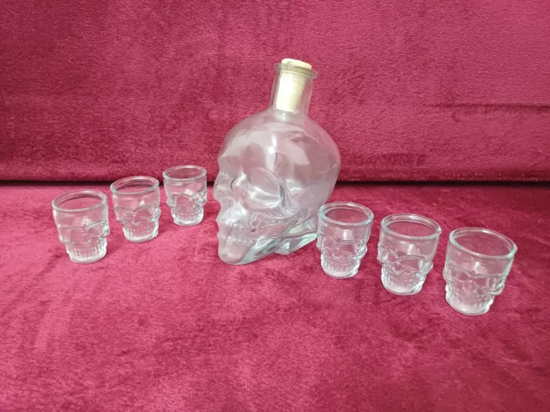 بطری و 6 عدد استکان کوچک شکل جمجمه
