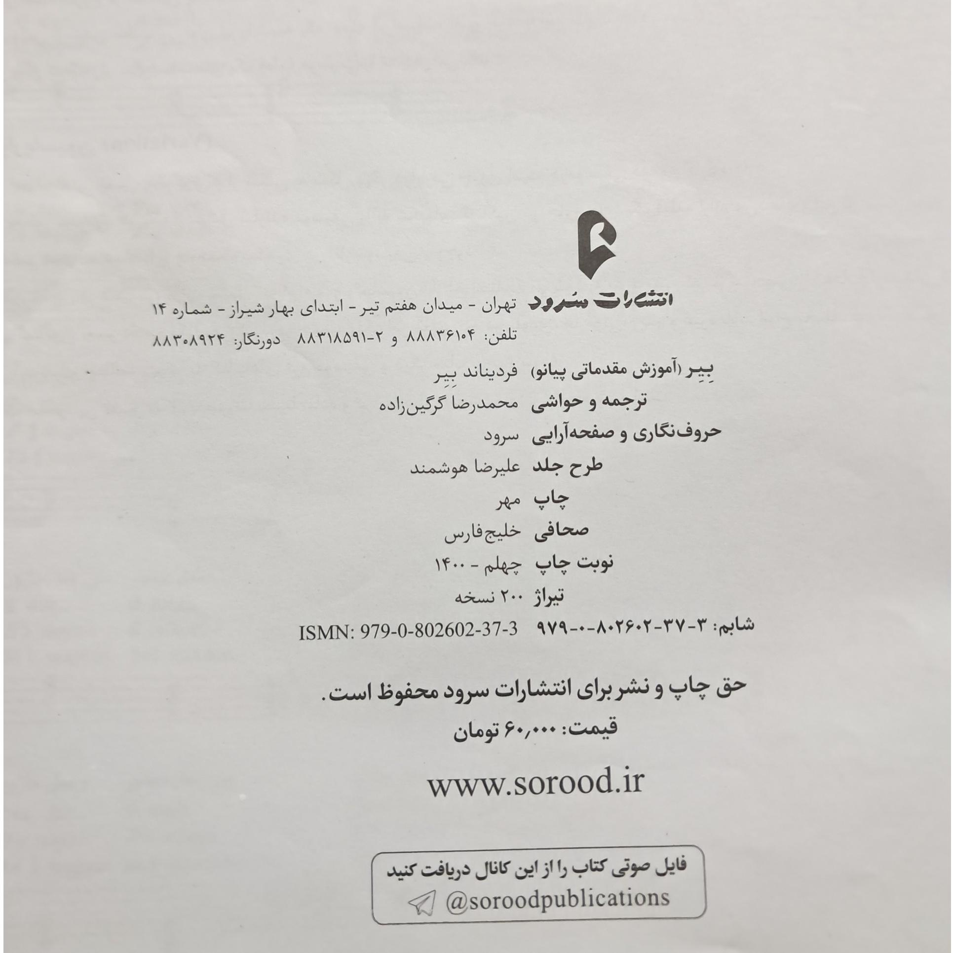 | نوع چاپ کتاب | چاپ اصل |