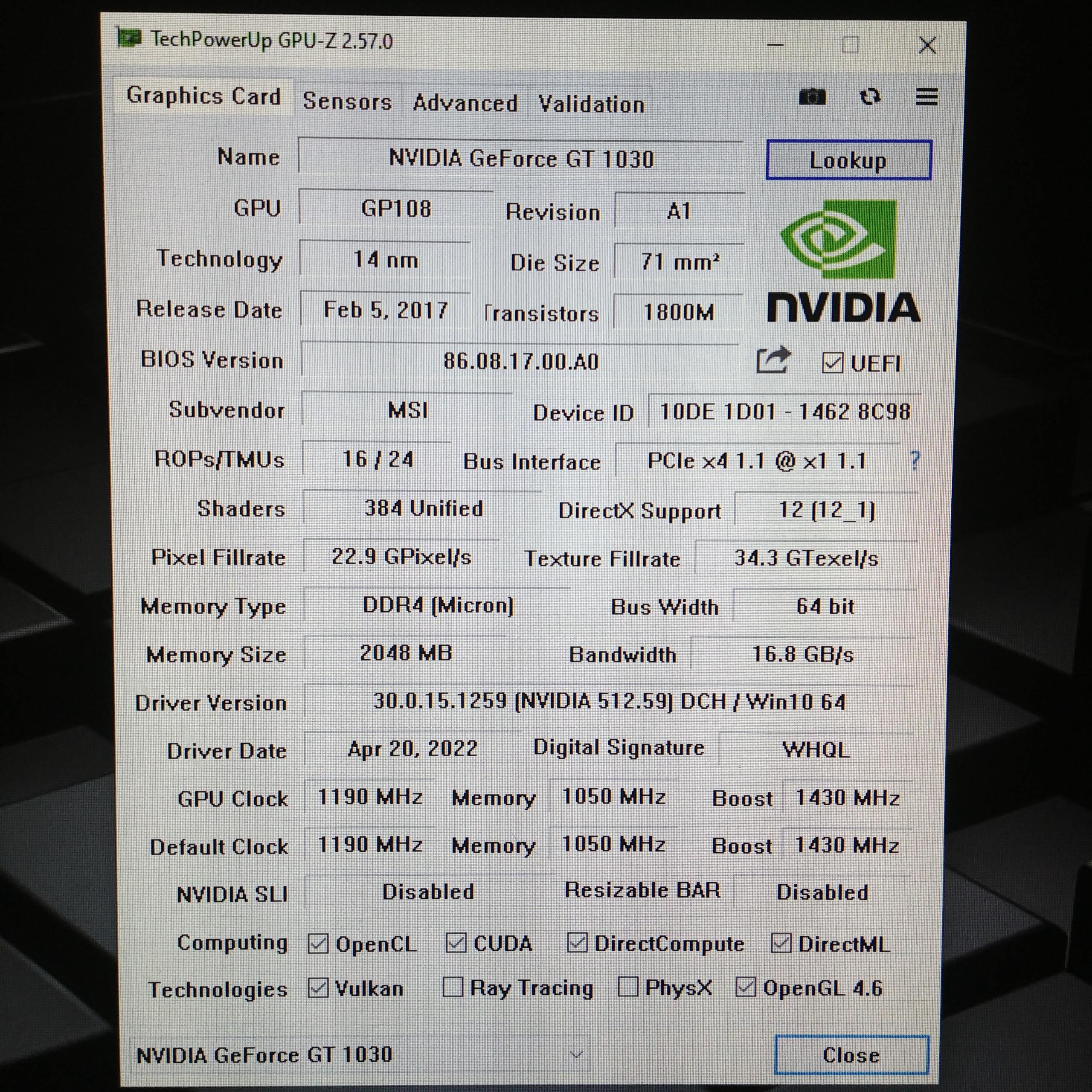 کارت گرافیک GT 1030 MSI مناسب برای مینی کیس