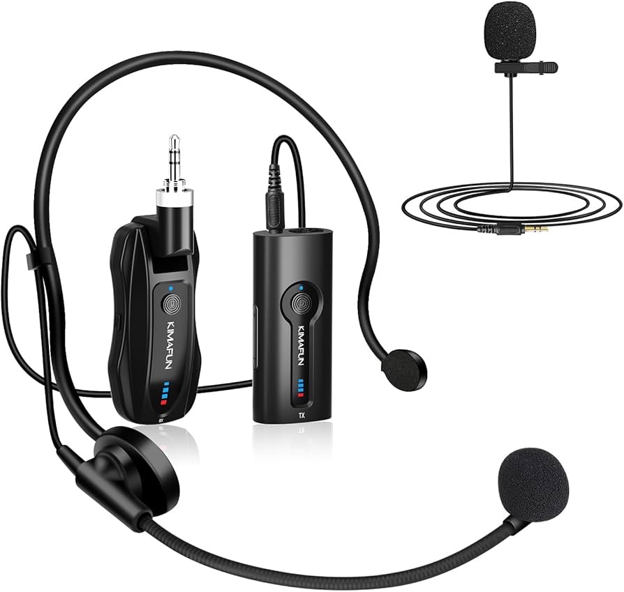 سیستم میکروفون یقهای بیسیم KIMAFUN، میکروفون یقهای بیسیم 2.4 گیگاهرتز، میکروفون دستی 2 در 1 برای تدریس، معلمان، سخنرانی، راهنمای تور، بلندگو، تقویتکننده، سیستم PA، پخش، KM-G70 (1TX1RX)