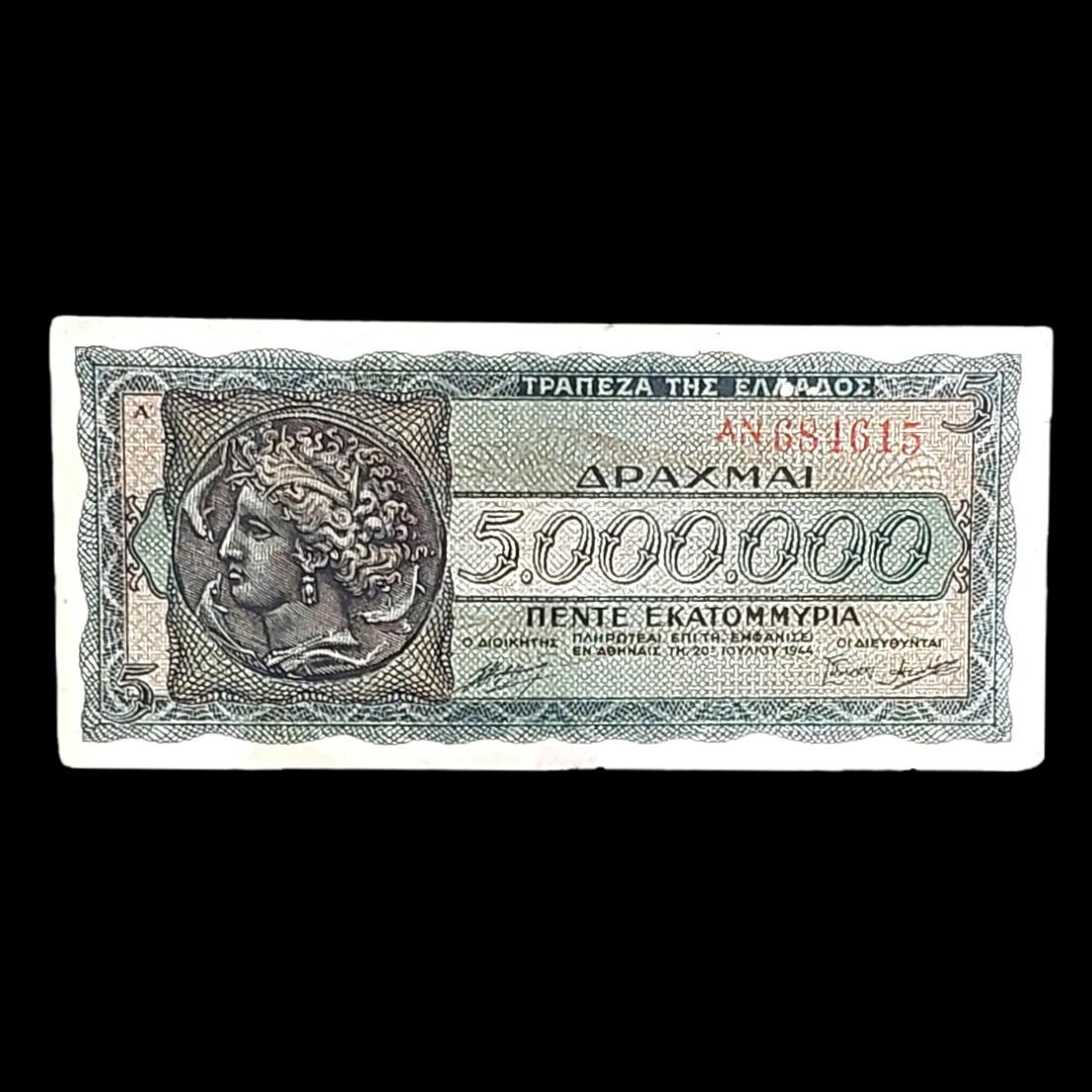 اسکناس زیبا و کمیاب 5000000 دراخما یونان 1944
