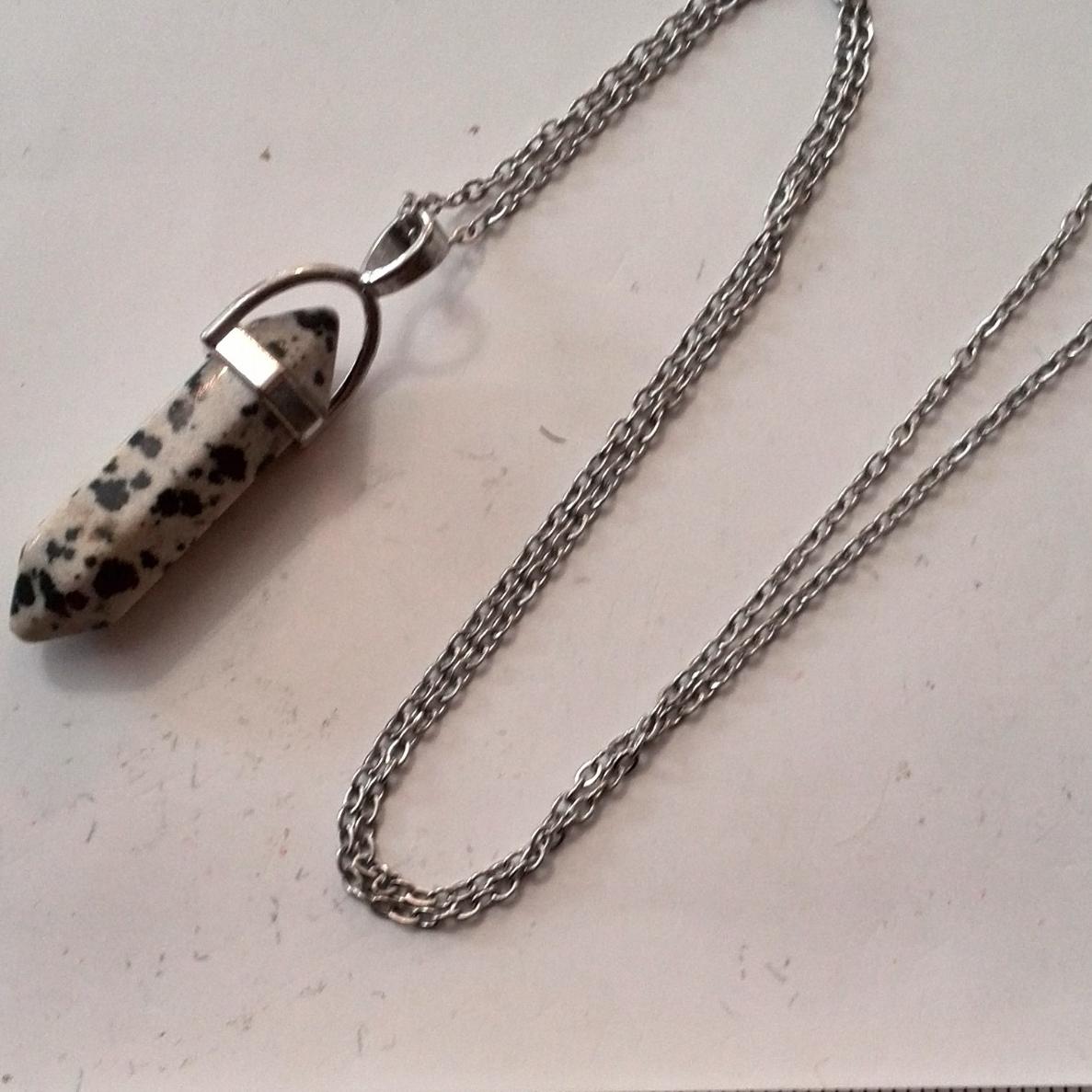 گردن آویز سنگ جاسپر دالمیشن یا دالماتین
