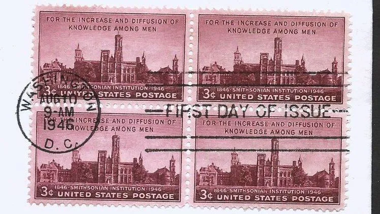 پاکت مهر روز قدیمی آمریکا یادبود صدمین سال تاسیس موسسه اسمیتسونین 1946 (77 سال قدمت)