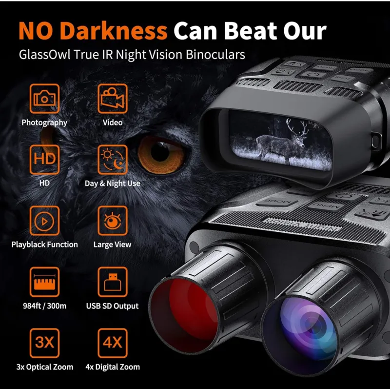عینک دید در شب HD در تاریکی 100%این دوربین شکاری دید در شب جغد مجهز به نورگیر مادون قرمز است که به شما امکان می دهد حیوانات یا اشیاء دیگر را ساعت ها بدون نور خارجی مشاهده کنید.