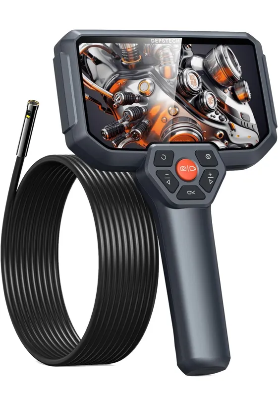 دوربین آندوسکوپ DEPSTECH با نور، صفحه نمایش 5 اینچی IPS، بورسکوپی با لنز دوگانه 7.9 میلی متری، دوربین بازرسی مار لوله کشی 1080P با صفحه تقسیم، کارت 32 گیگابایتی TF، قاب سخت، گجت مردانه، Mechanic-16.5FT