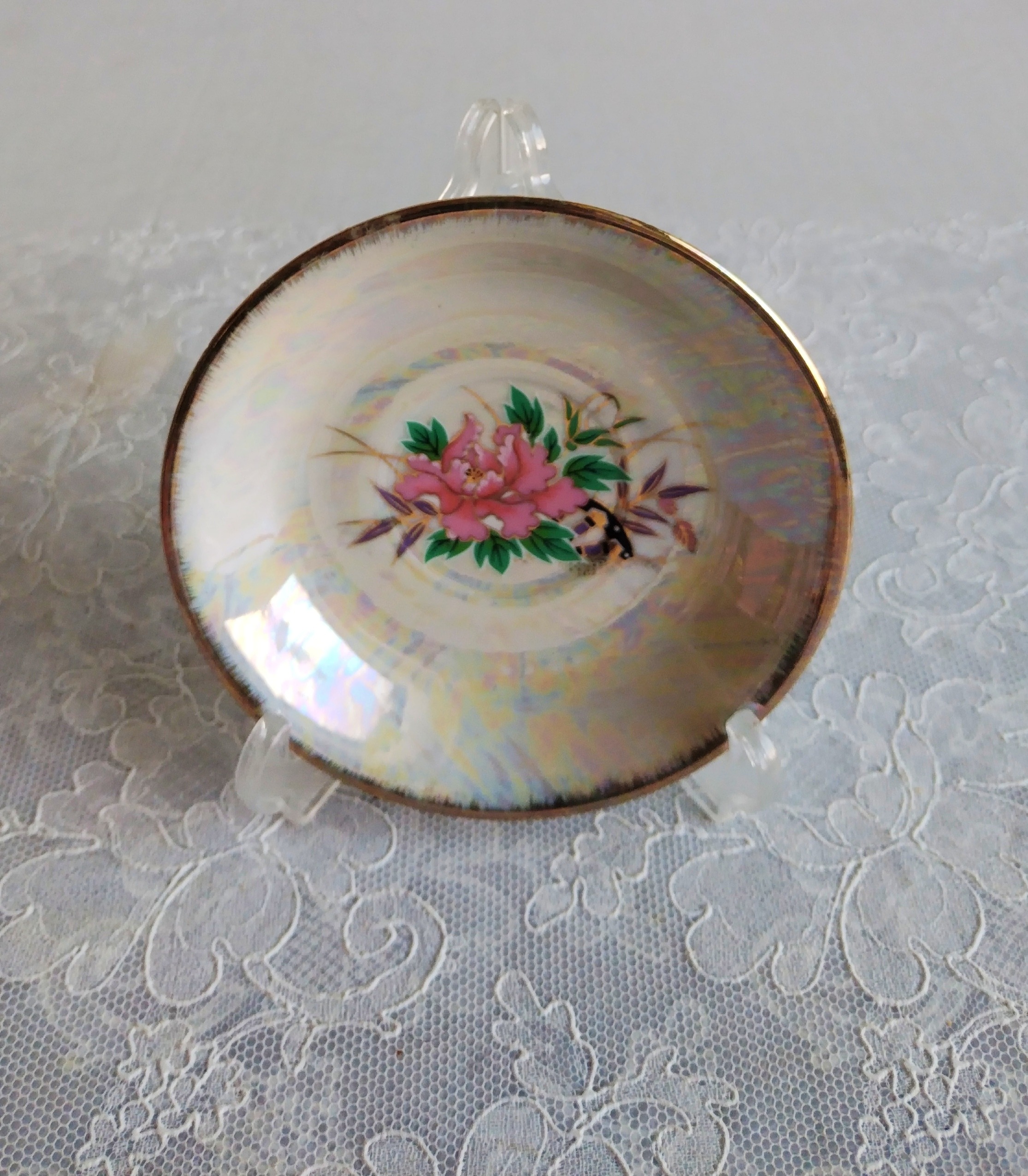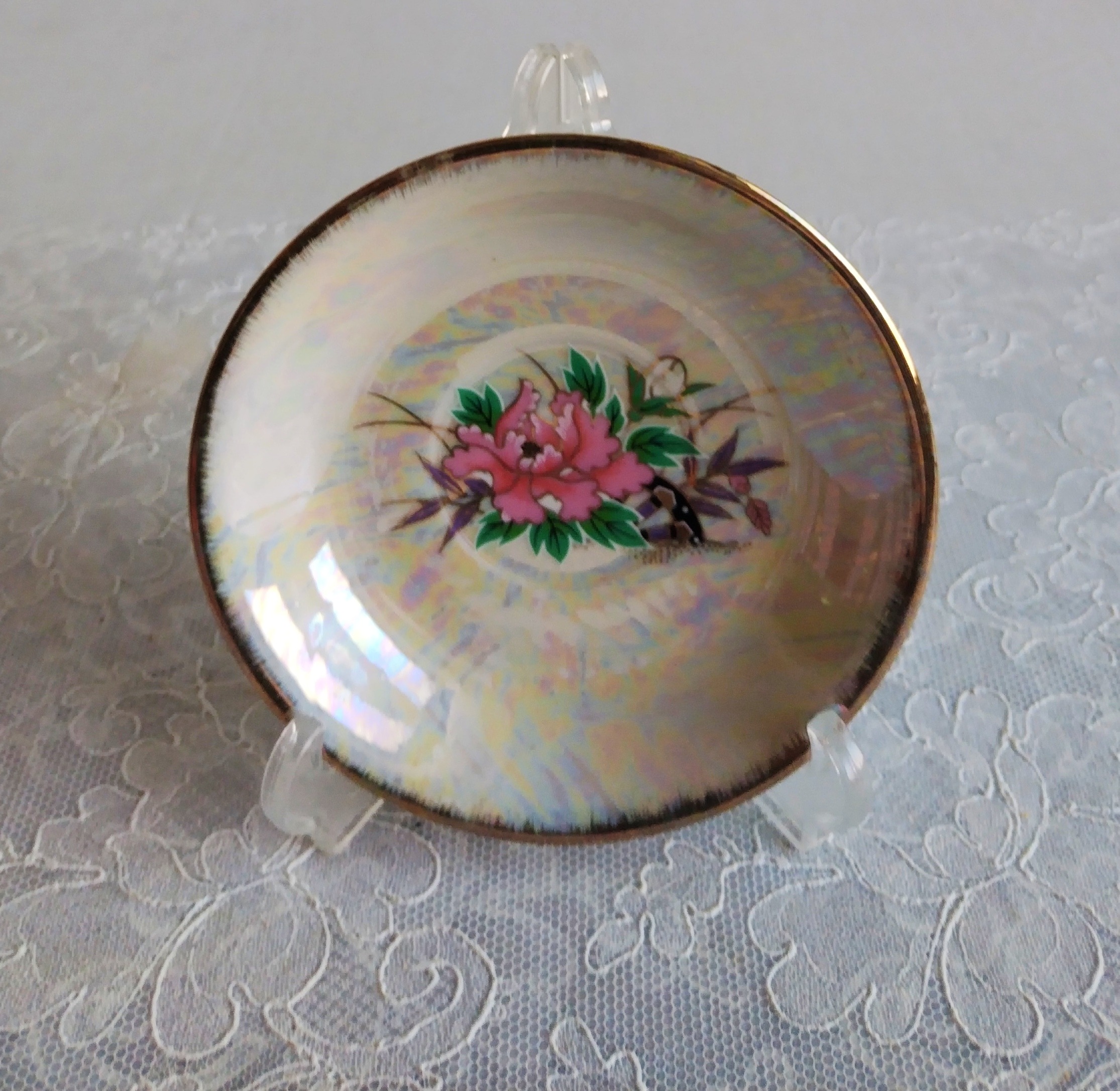 نعلبکی قدیمی هفت رنگ گلدار،کمیاب
