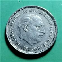 سکه اسپانیا 1957 قدیمی 25 پزوتا ش128