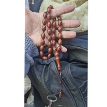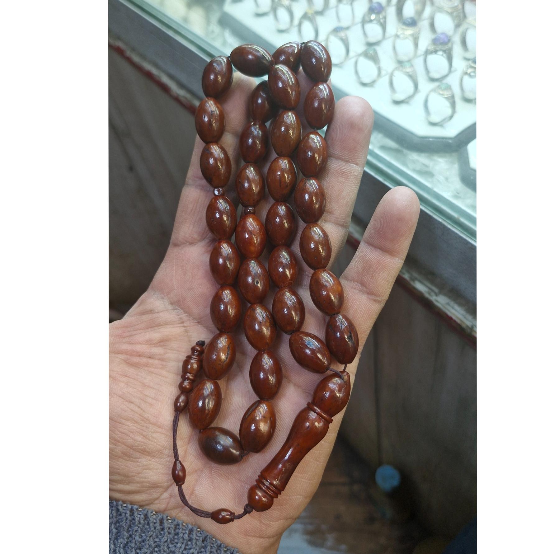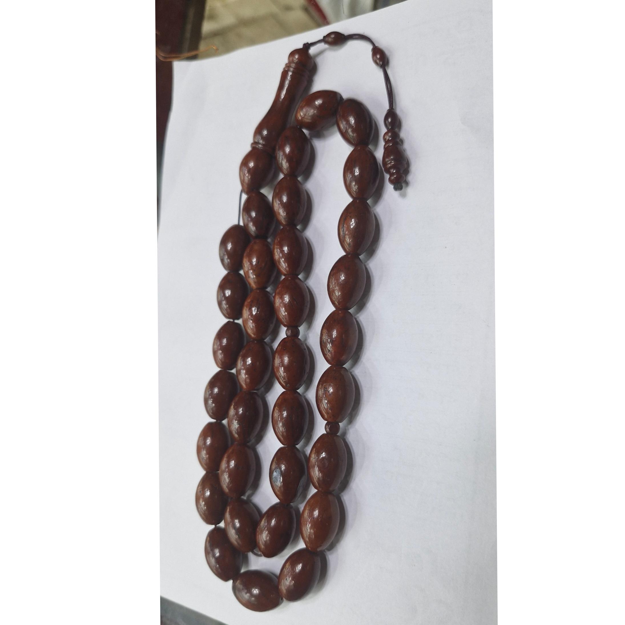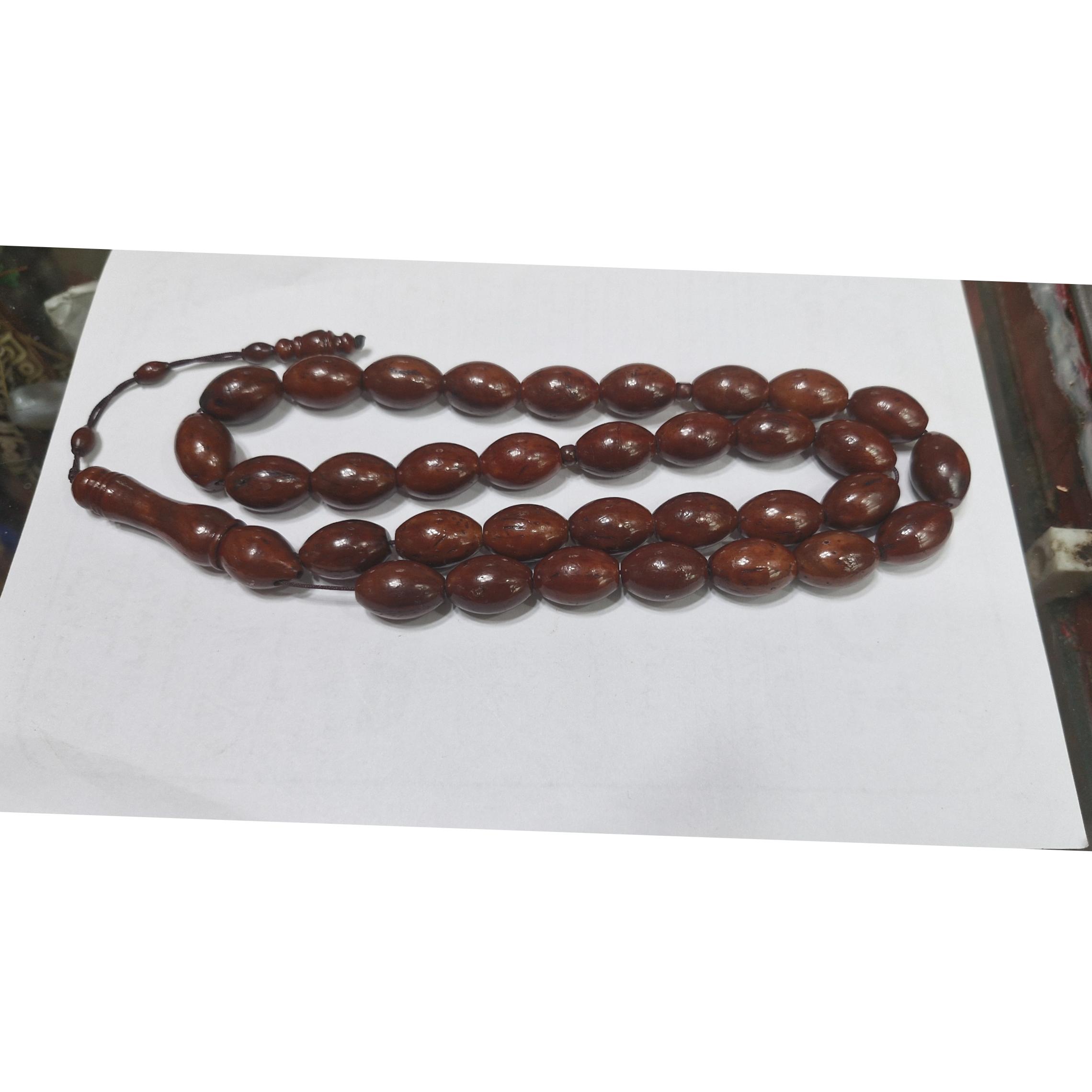 تسبیح کشکول سی وسه دانه آفریقایی تراش دست کار کشور مصر تهیه شده از پوست بادام آفریقایی طول 35 سانتیمتر خوش دست و زیبا