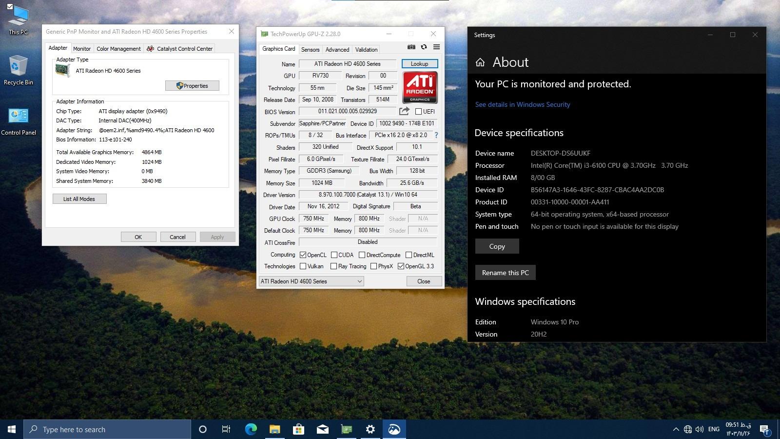 تست تصویر و gpu کارت گرفیک در ویندوز 10 در عکسهای 4و5 قرار دادم.