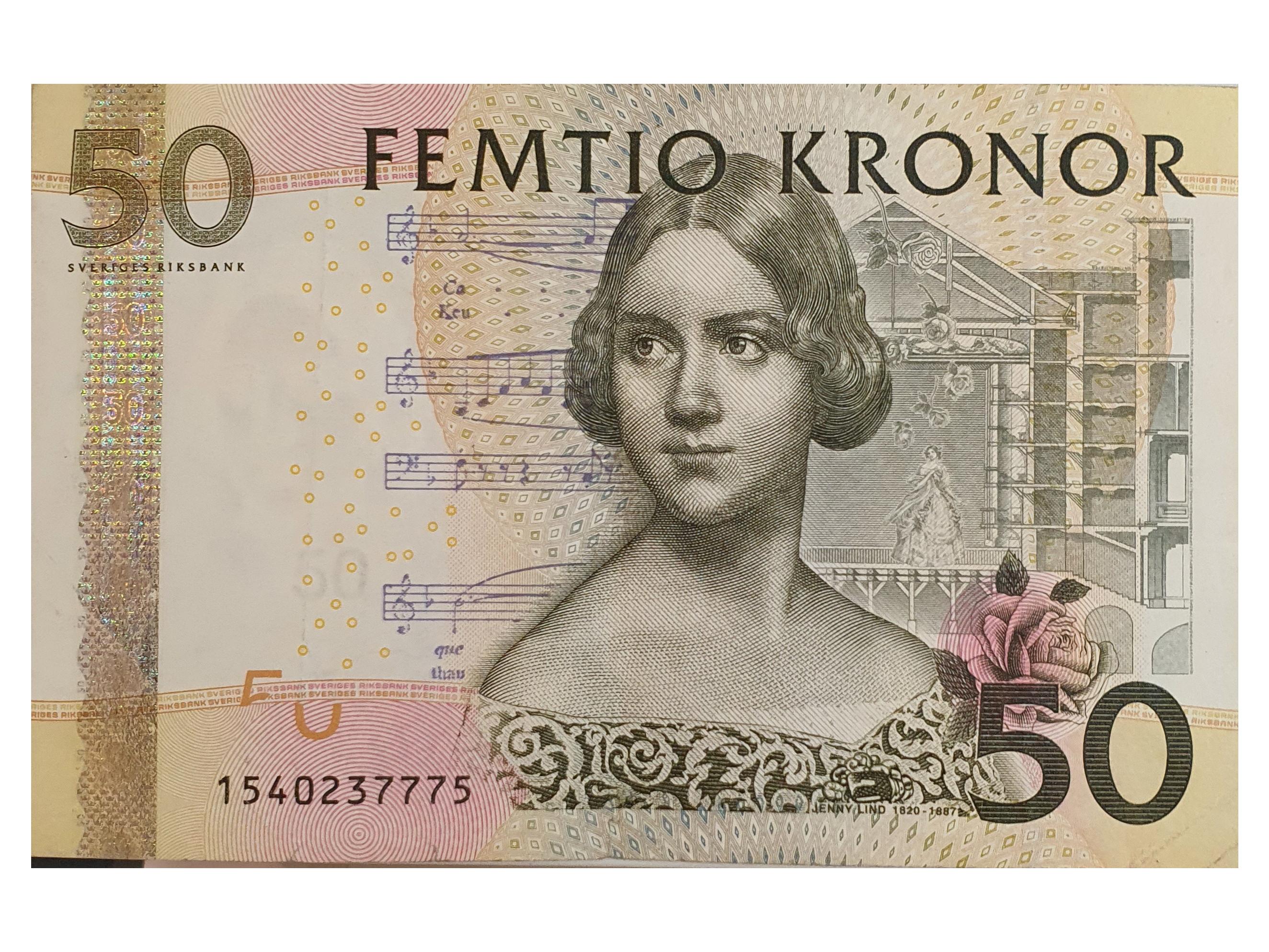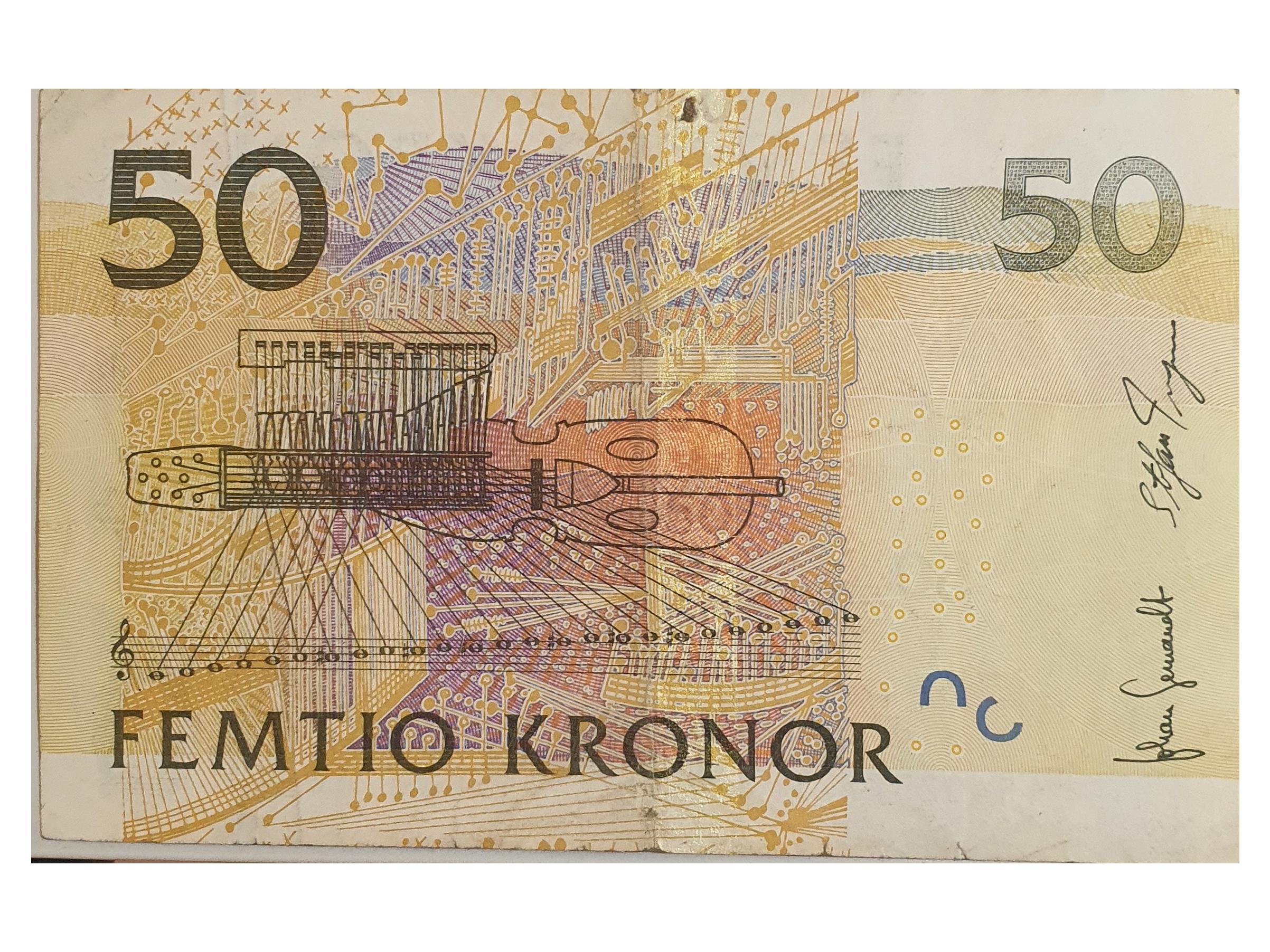 اسکناس 50 کرون سوئد نوار نقره ای ارزشمند