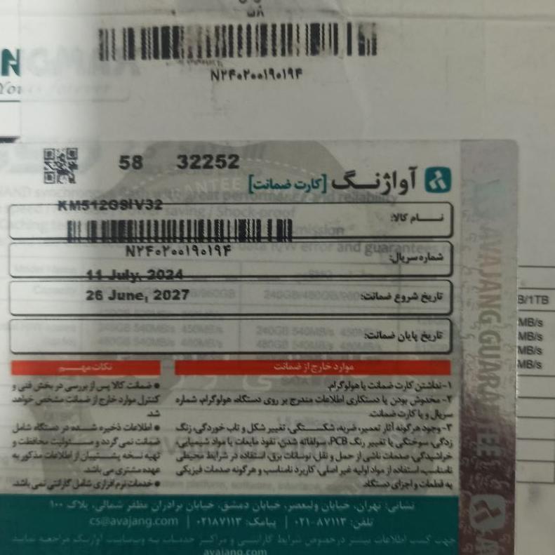 SSD فوق کاملا نو و روی سیستم بسته نشده است.....فقط از جعبه در اومده و مدتی کنار بوده است....دارای گارانتی آواژنگ تا 26 JUNE سال 2027  می باشد