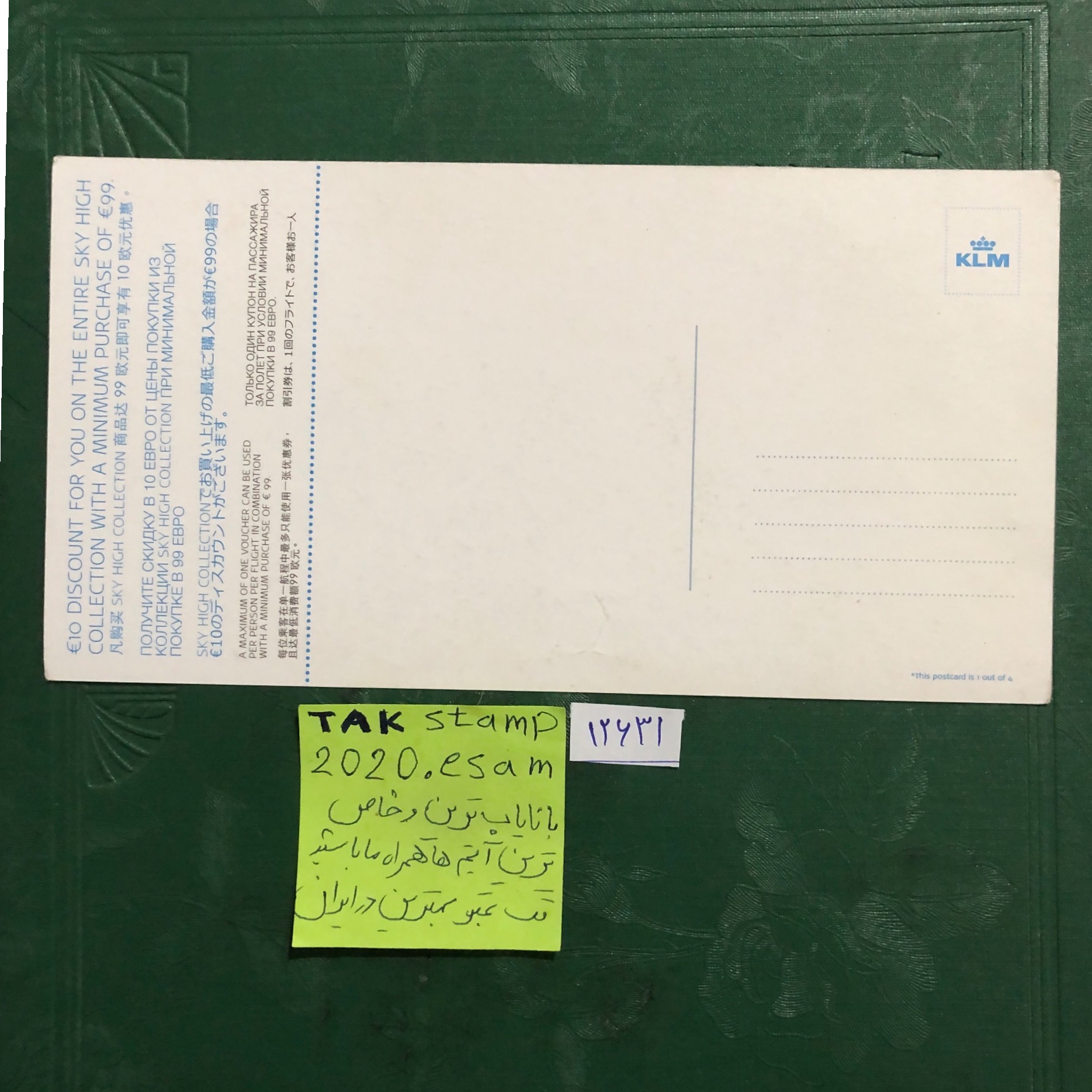 کارت پستال بلیطی هواپیمایی کی ال ام-10 پوندی