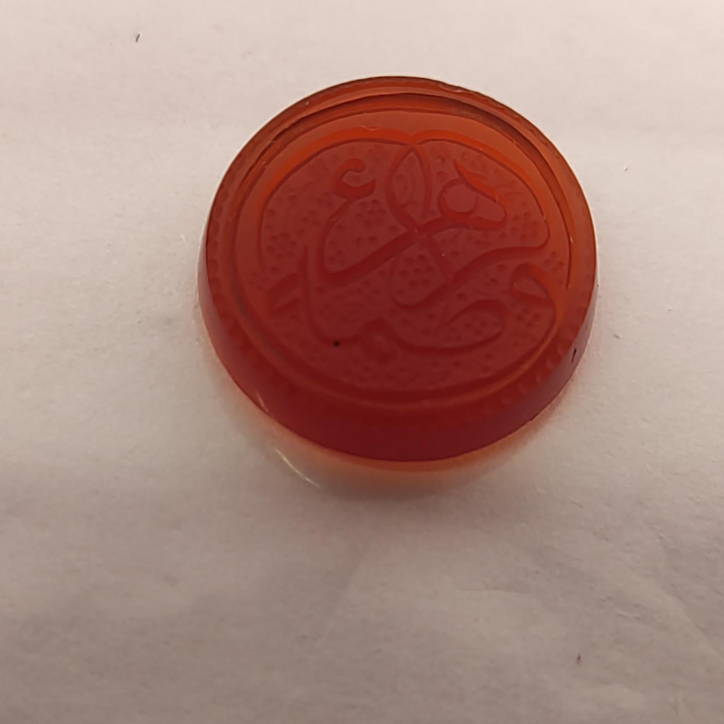 نگین عقیق سرخ تراش گرد حکاکی یا فاطمه زهرا