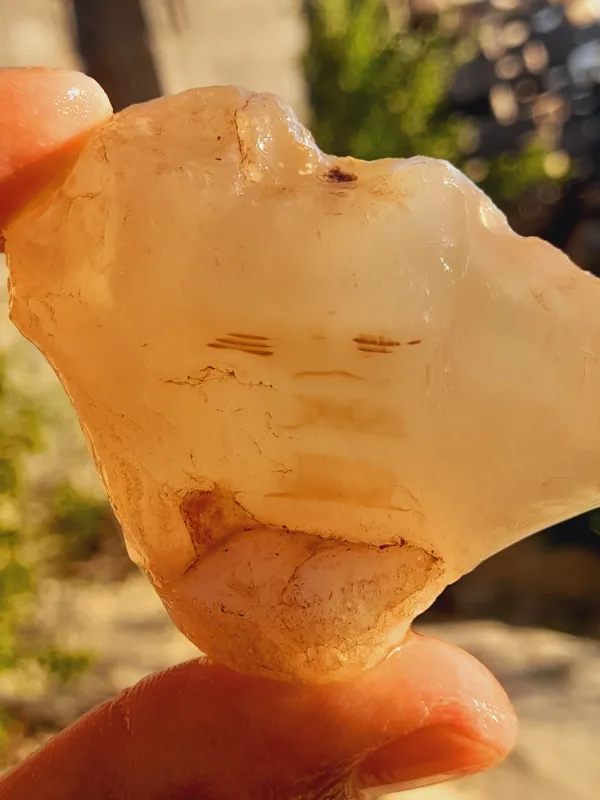 یک قطعه راف عقیق مصور دو چشم.بینی.دهان.بسیار شفاف