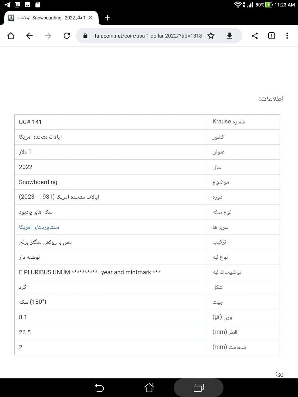 مشخصات کالا