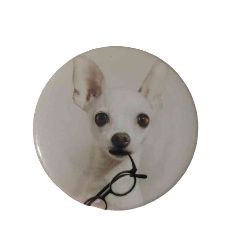 بسته 2 عددی پیکسل سوزنی دایره ای گرد طرح سگ وا سفید گوش تیز عینک به دهان و دندان سنجاق سینه لباس پوشاک کیف کفش طرح سگ شیهواهوا گوش سیخ