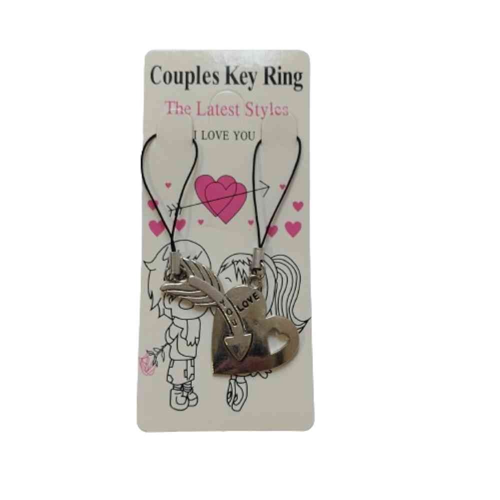 بسته 2 عددی ست دونفره آویز مدل پازلی قلب و تیر کمان جفت دختر و پسر عاشق و معشوق مناسب فلش و گوشی موبایل و کیف و گردنبند و ساعت طرح لاو یو love you نگین دار
