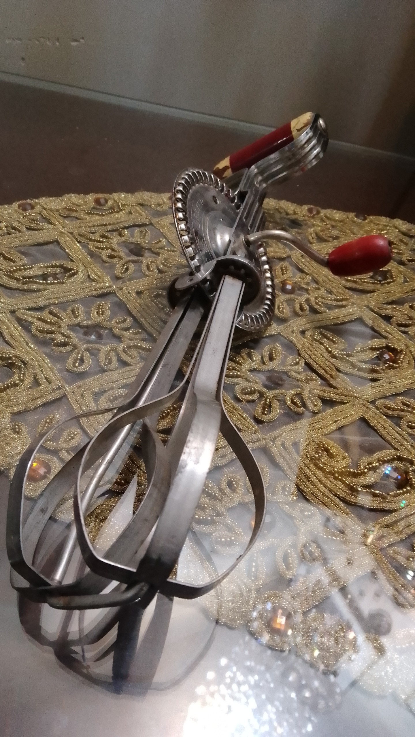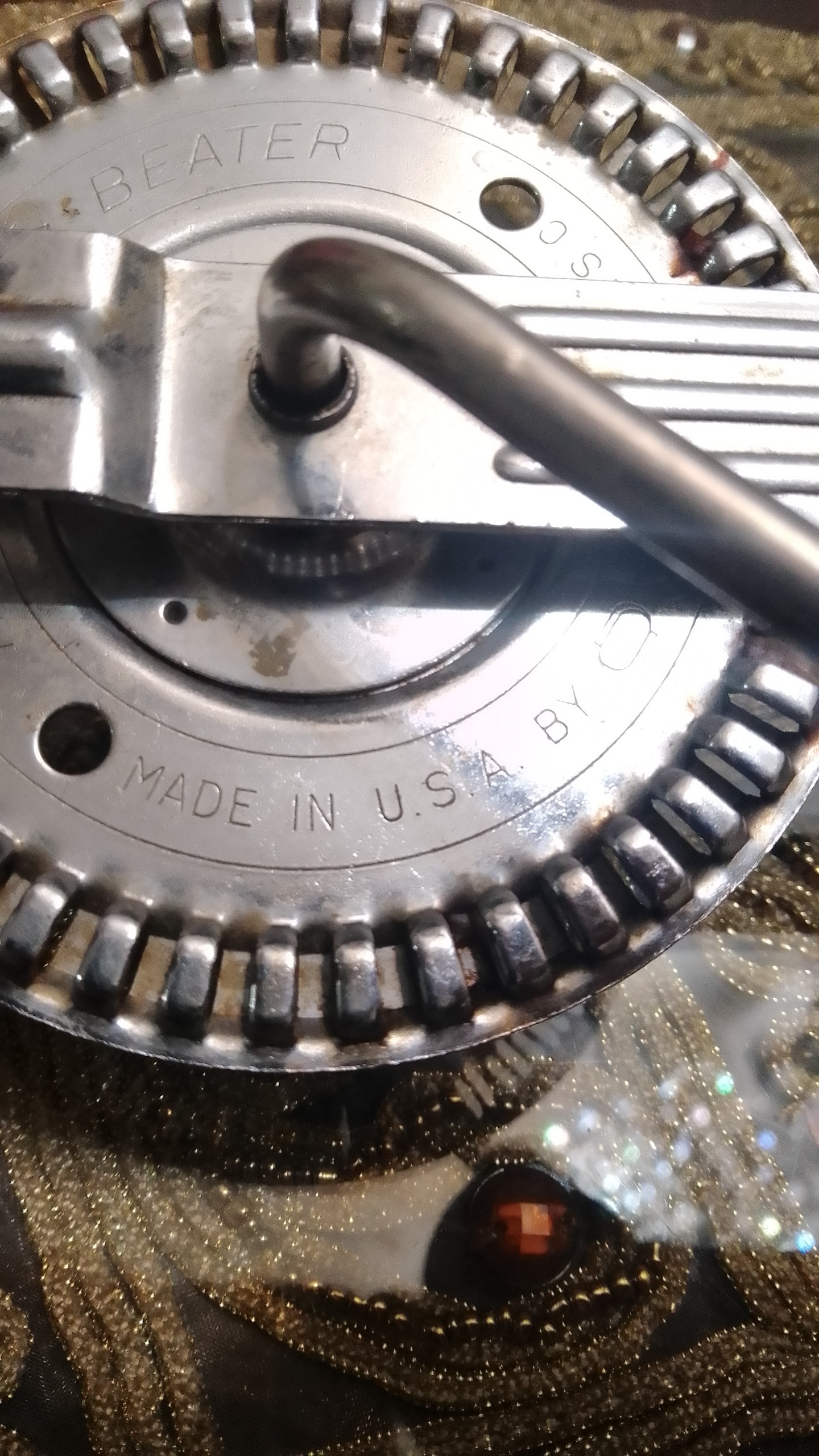 همزن دستی قدیمی آمریکایی مارکدار چرخ دنده فلزی