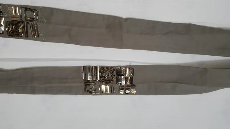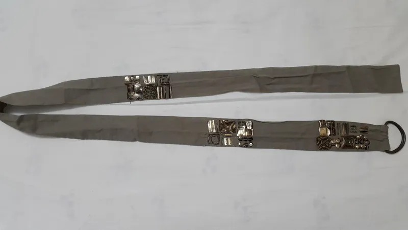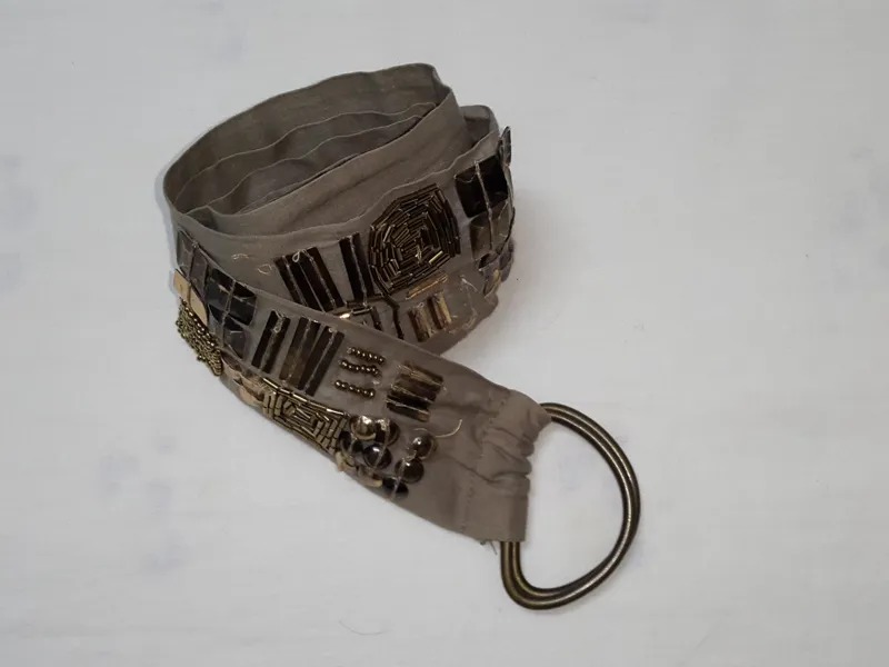 کمربند پارچه ای تزیین شده که برای مانتو استفاده می شده است.