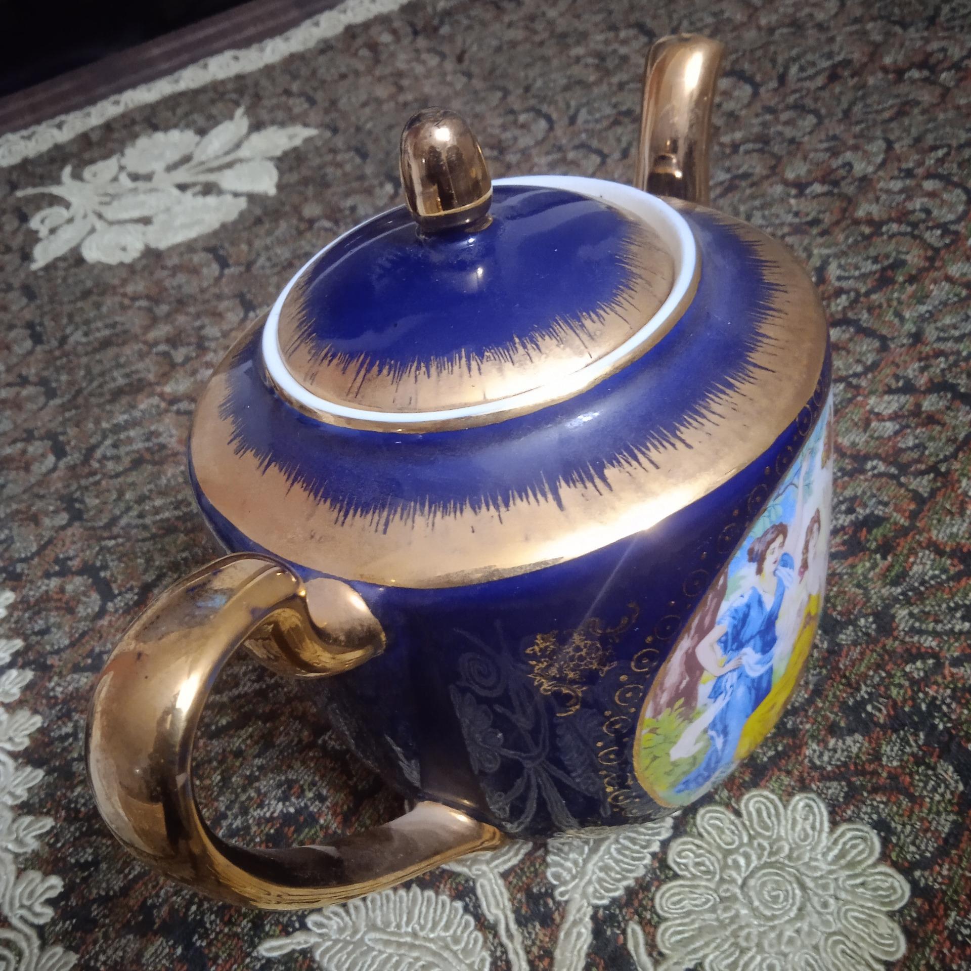 قوری قدیمی سرمه ای مدل لندنی نقش سه دختر