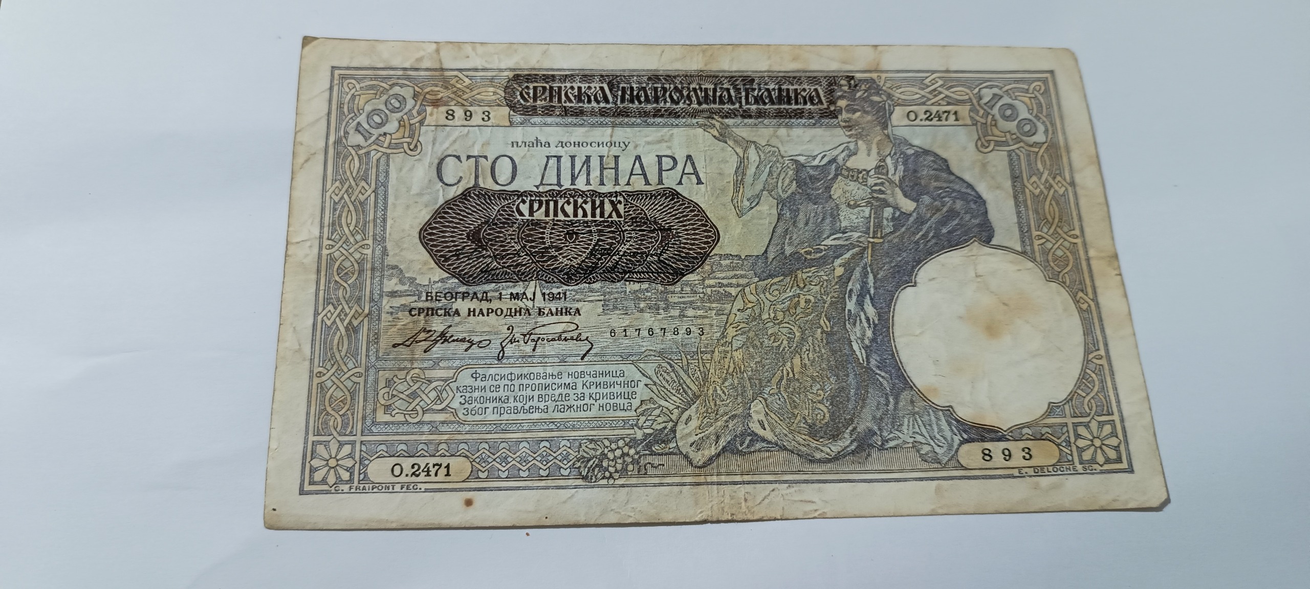 100 دینار صربستان تاریخ 1941