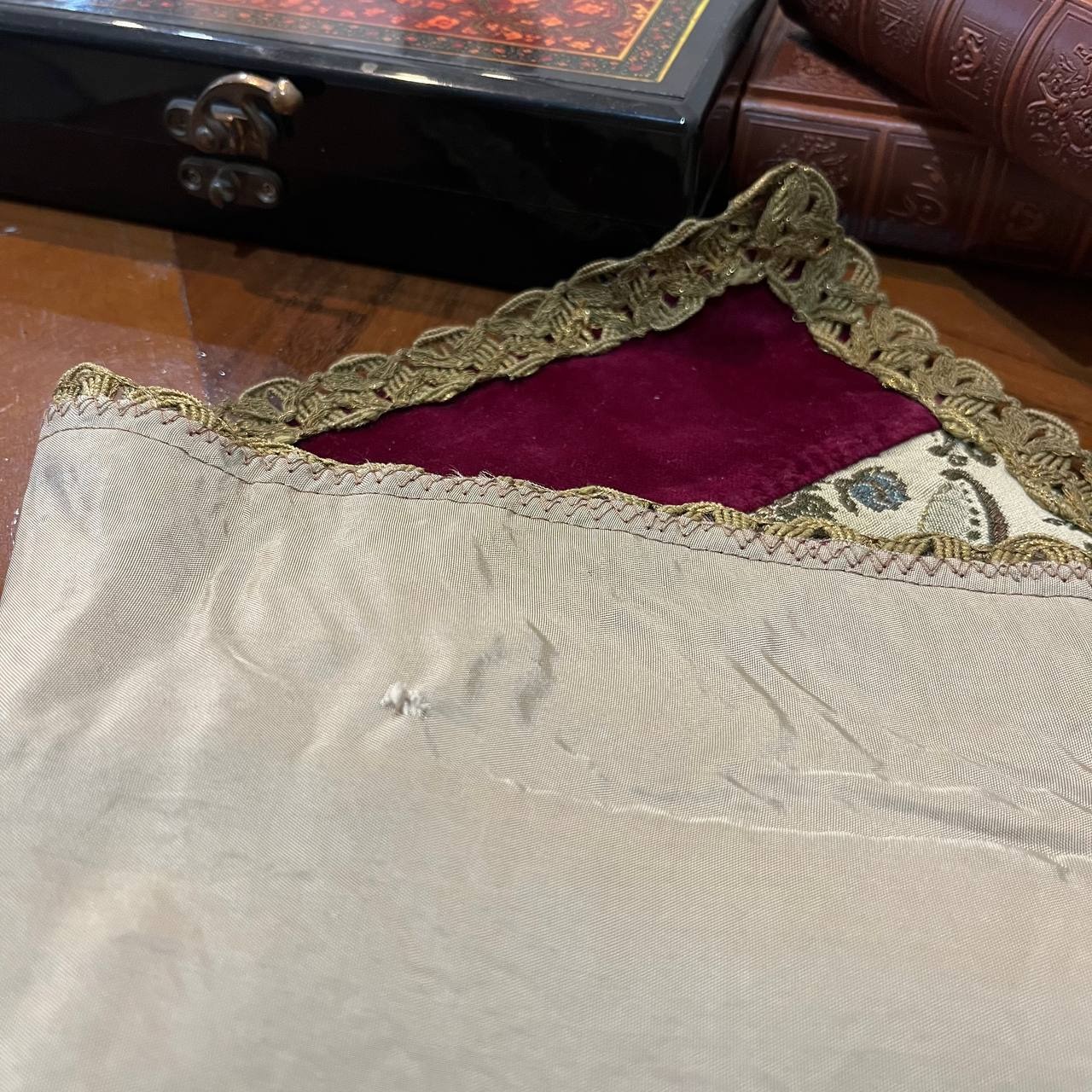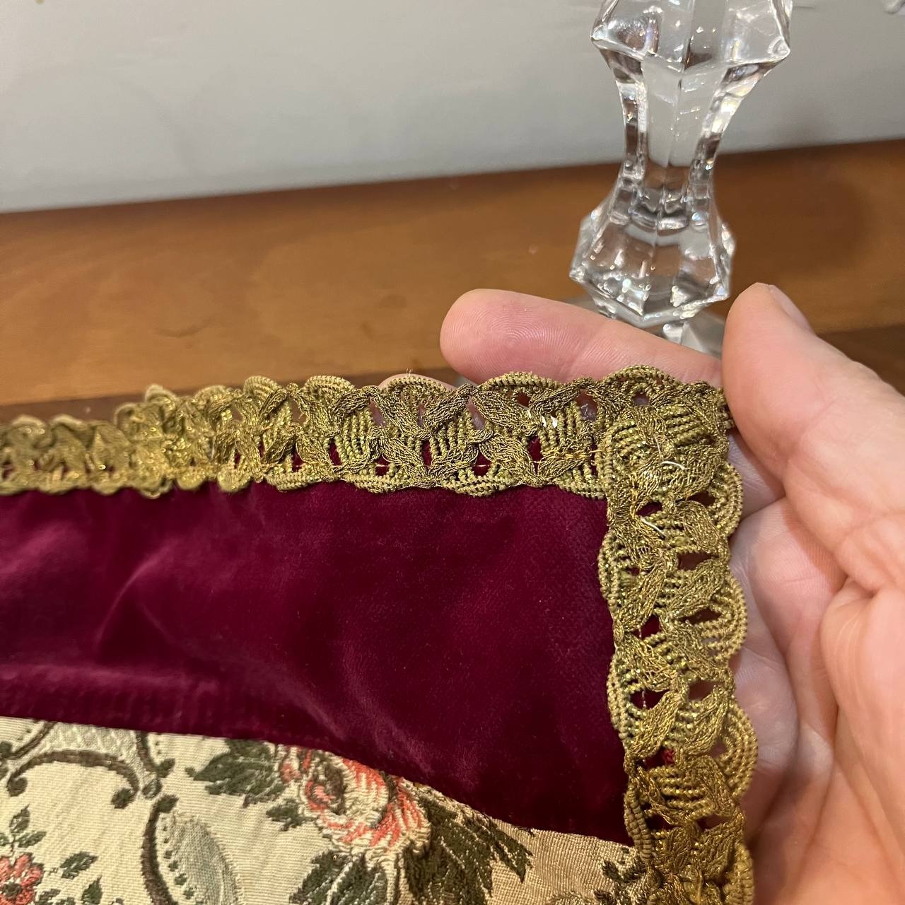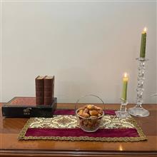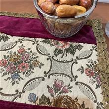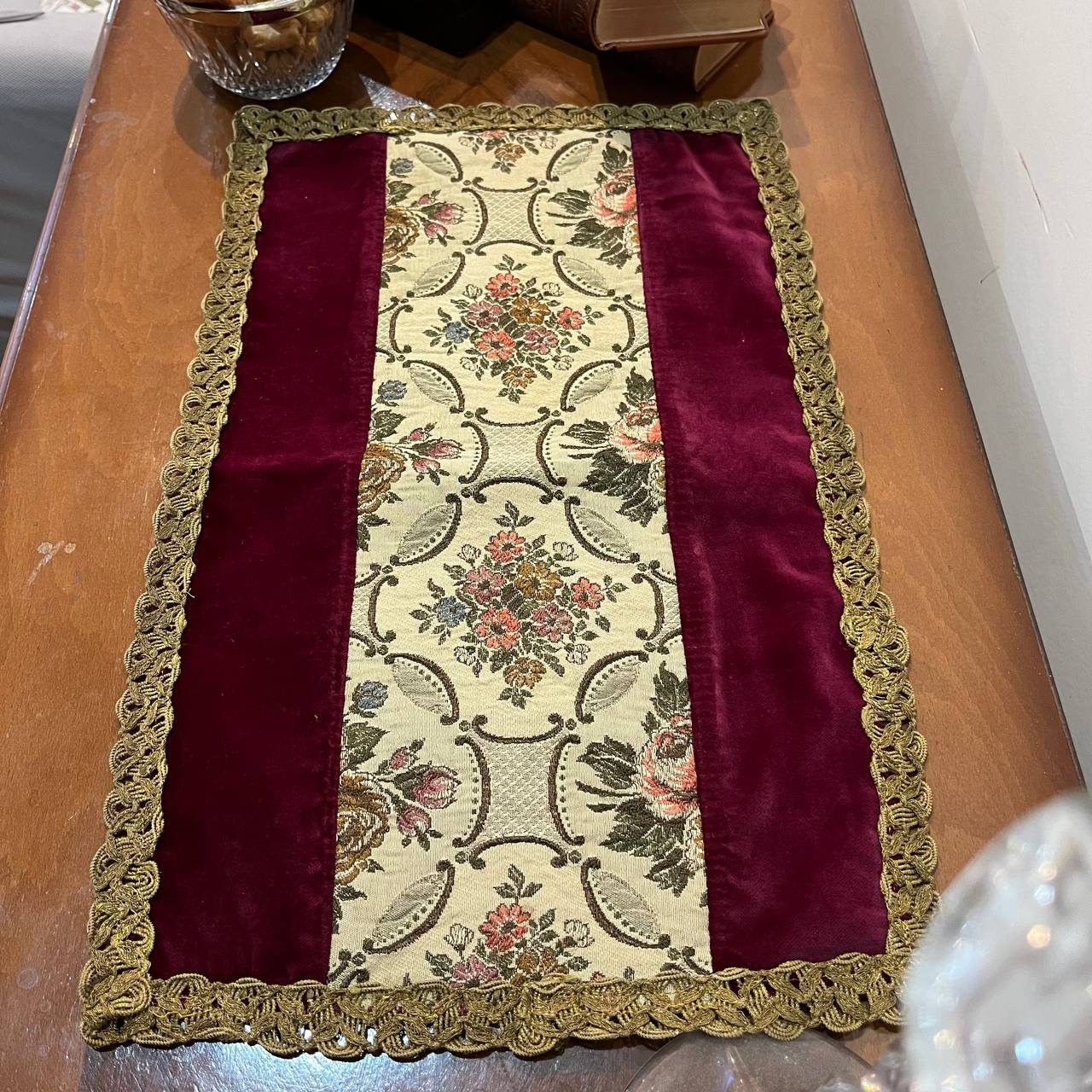 رومیزی قدیمی ترکیب مخمل و گل دار وسط با یراق سیمی