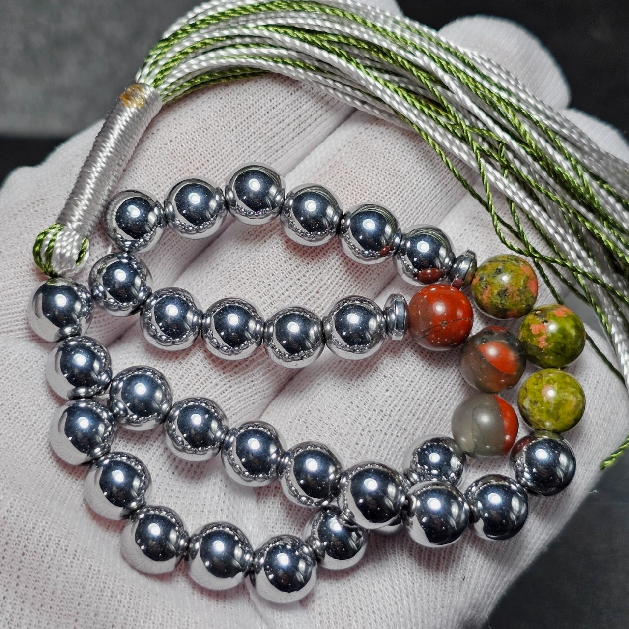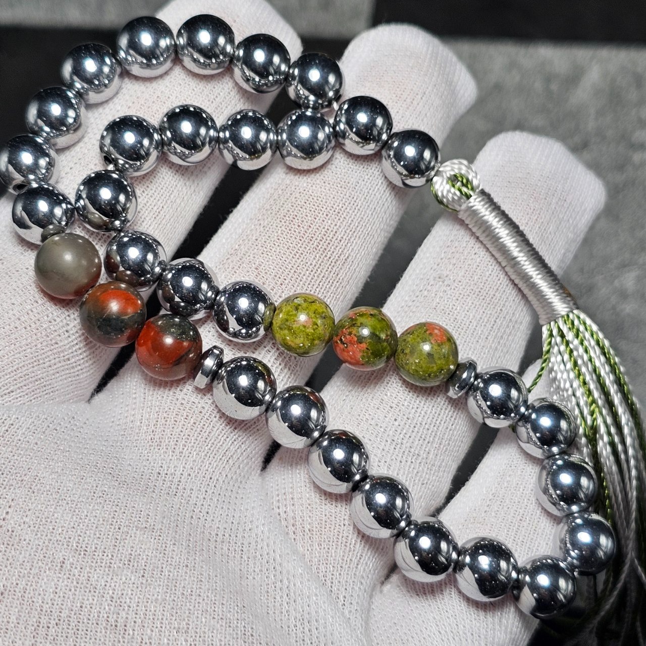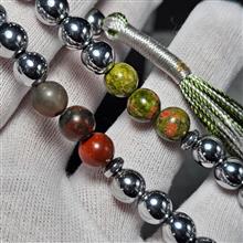 تسبیح 33 دانه سنگ ماه تولد معدنی ( سنگ خون اوناکیت حدید )