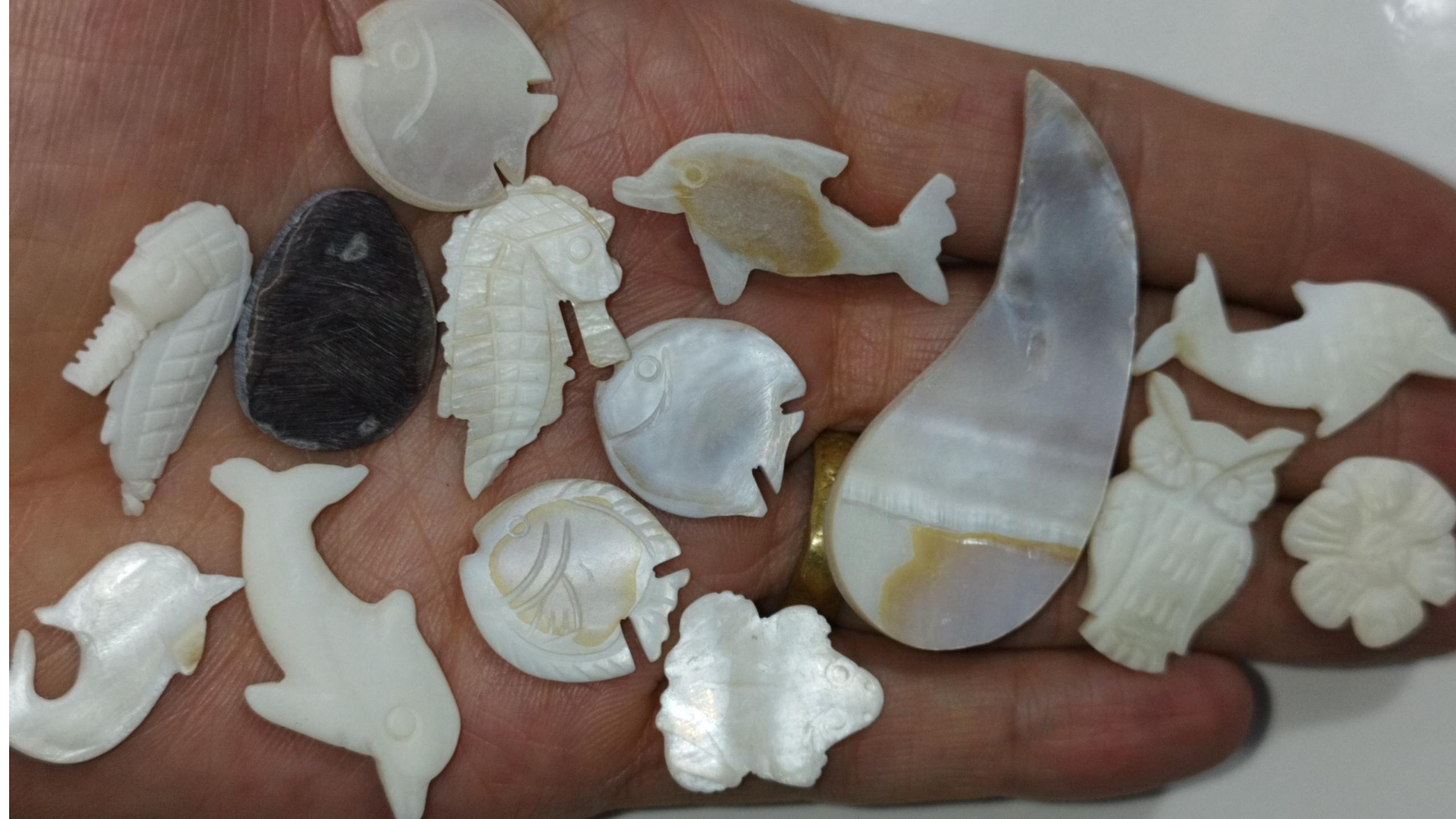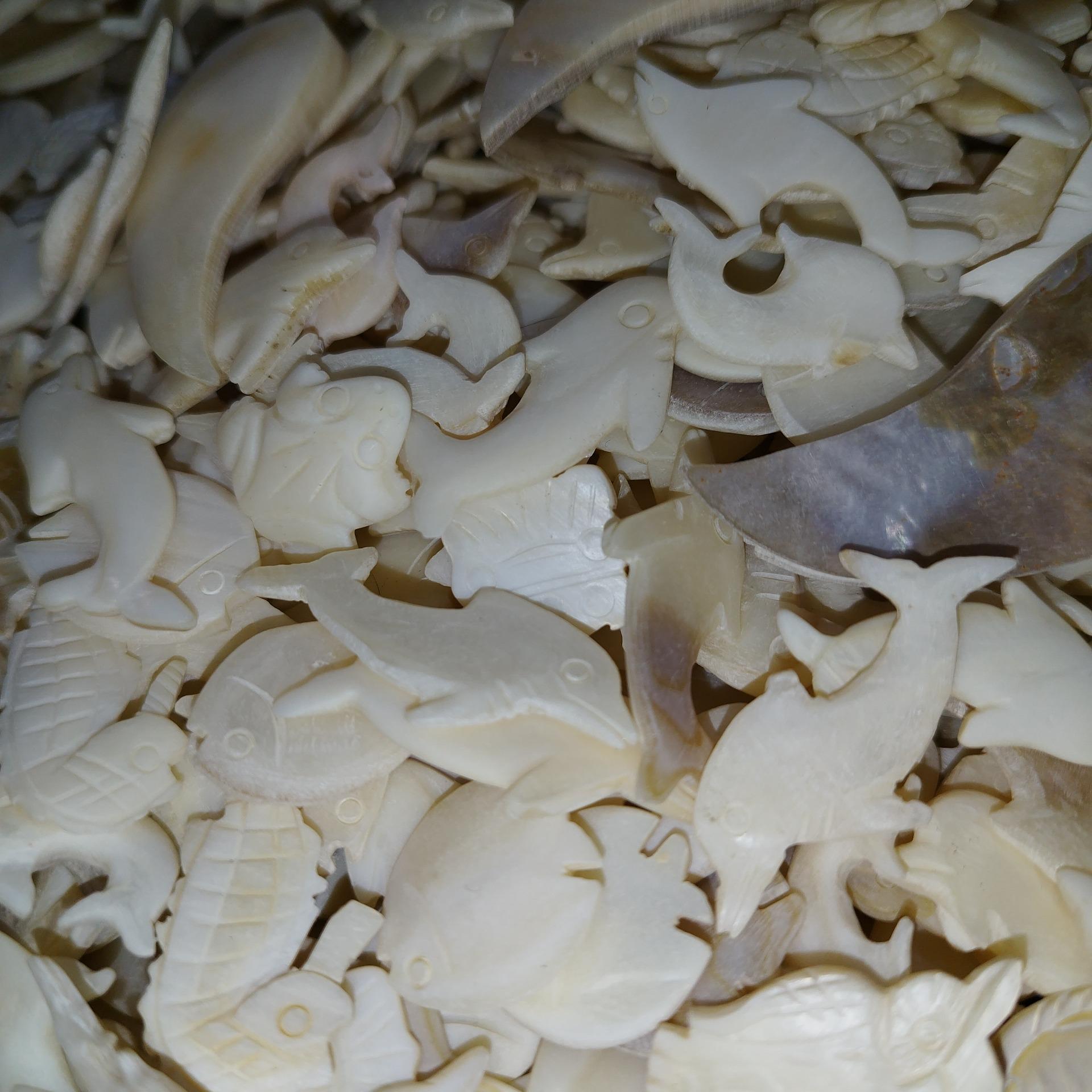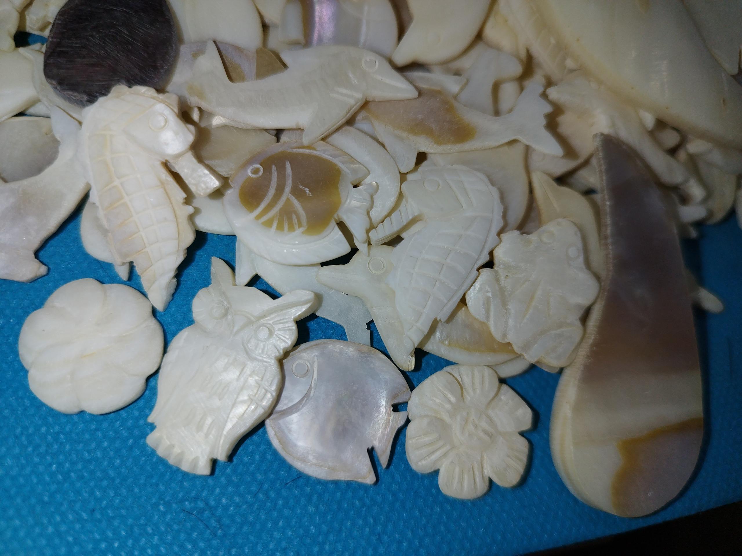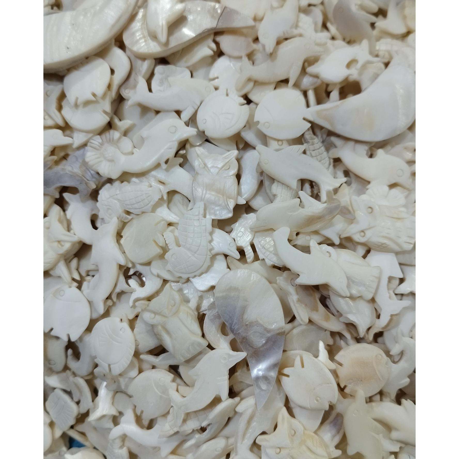 500عدد مجسمه تراش دستی صدف طبیعی مناسب برای ساخت آویز گردنبند و دستبند و زیورآلات و کارهای هنری دستساز