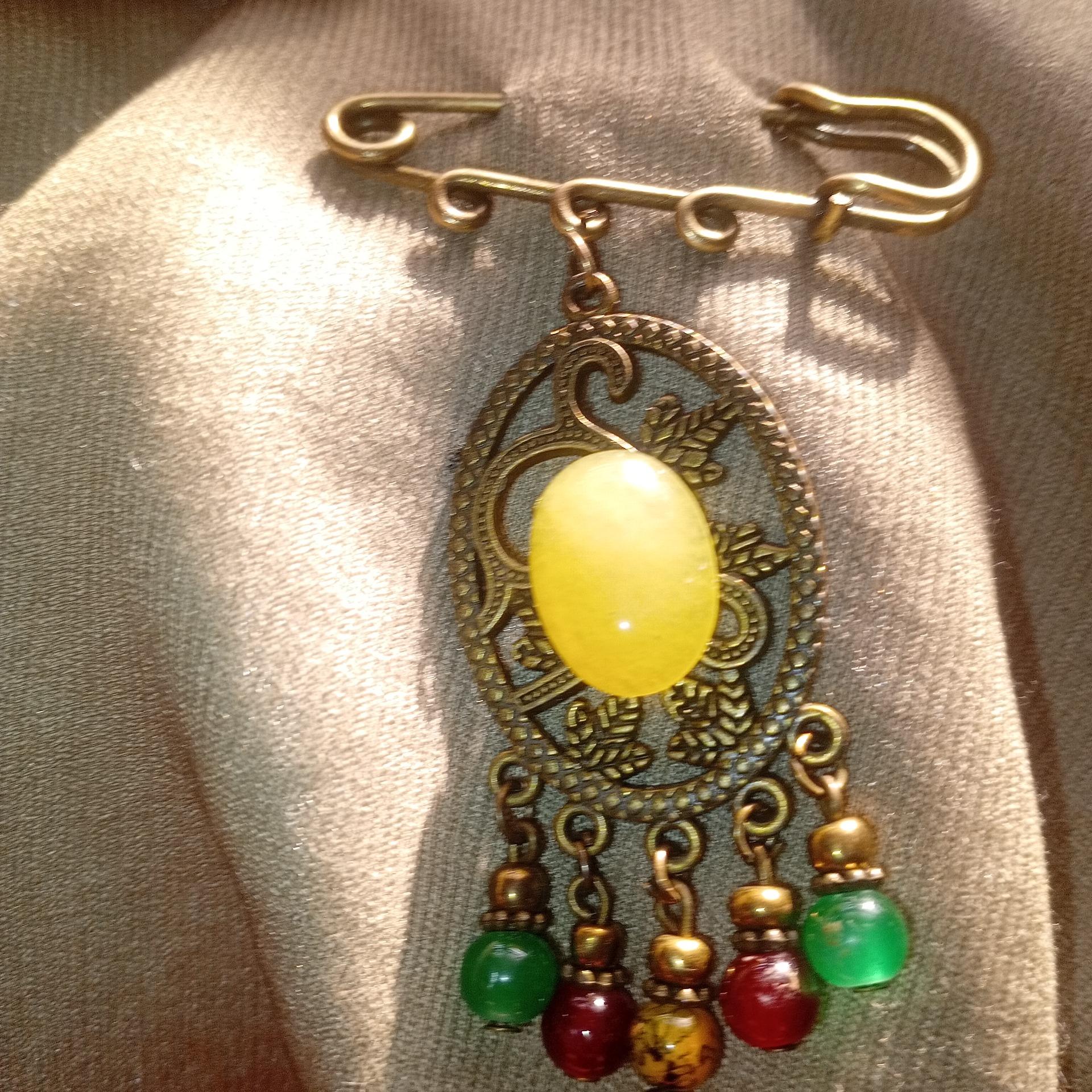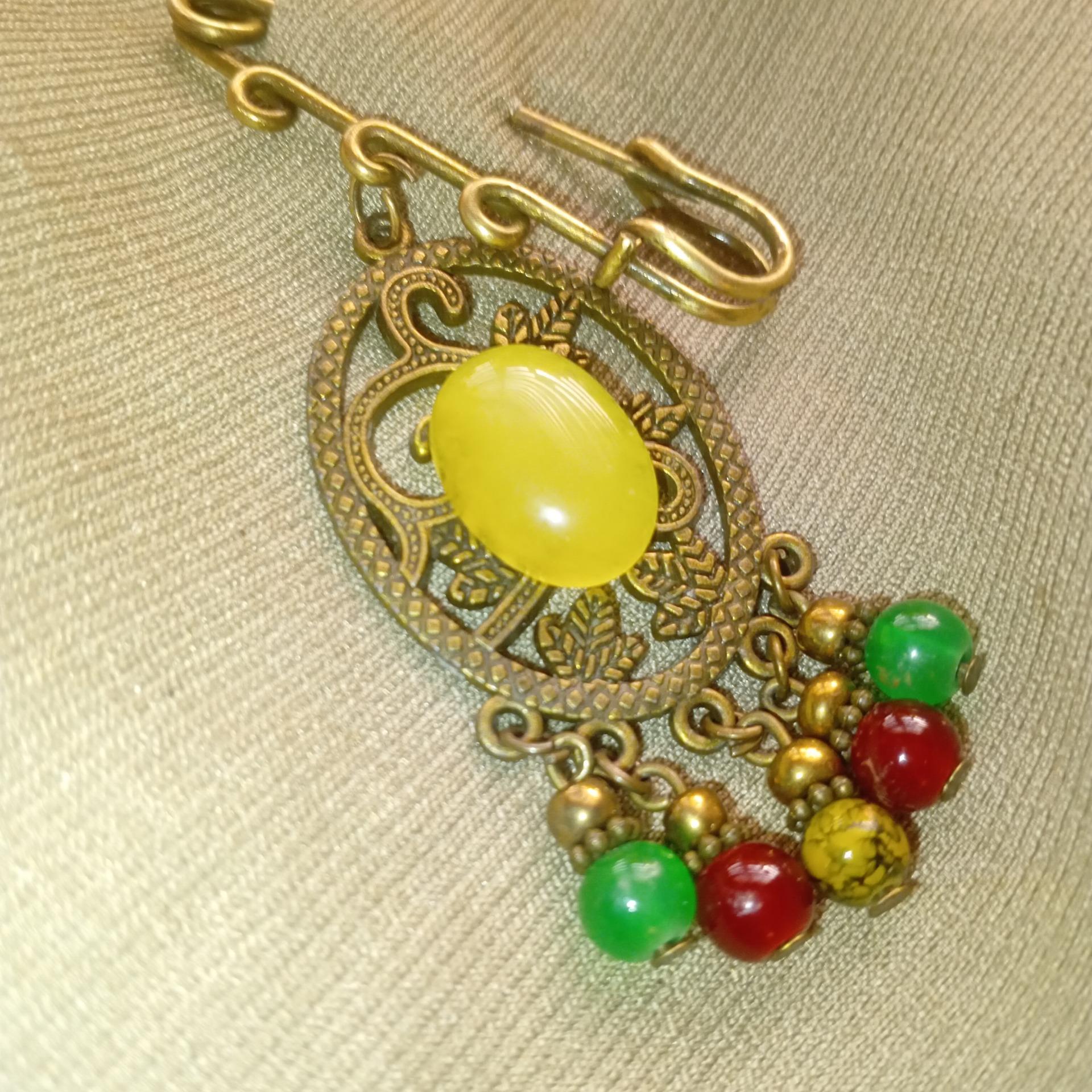 سنجاق سینه فلزی طرح رو اسلیمی کار دست
