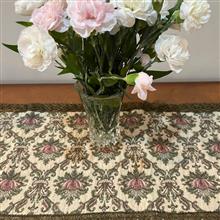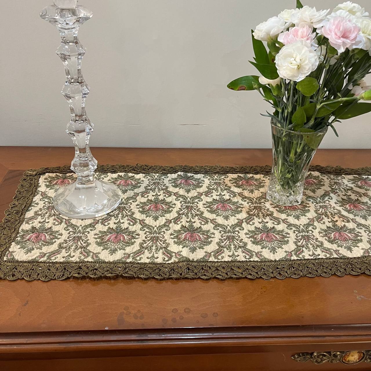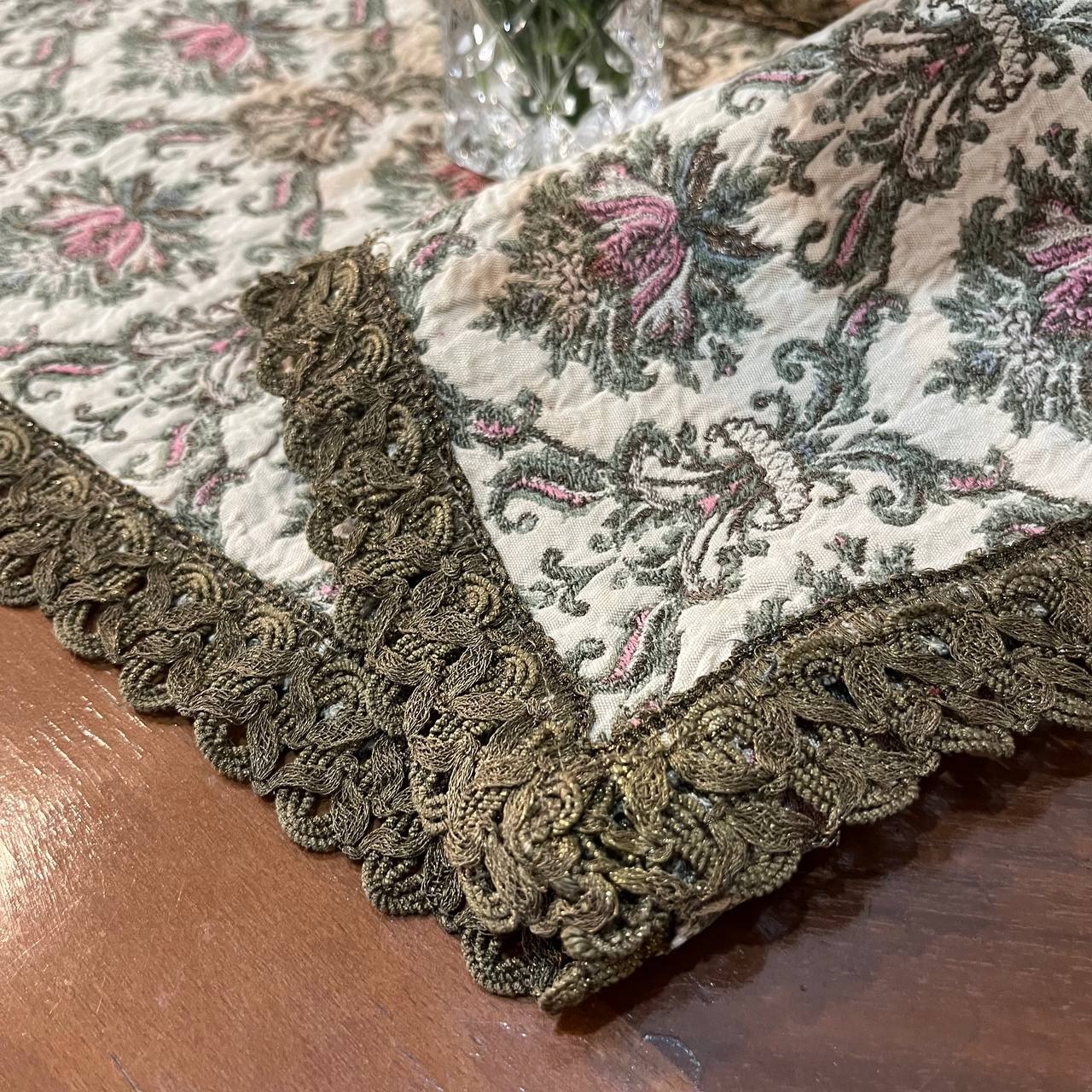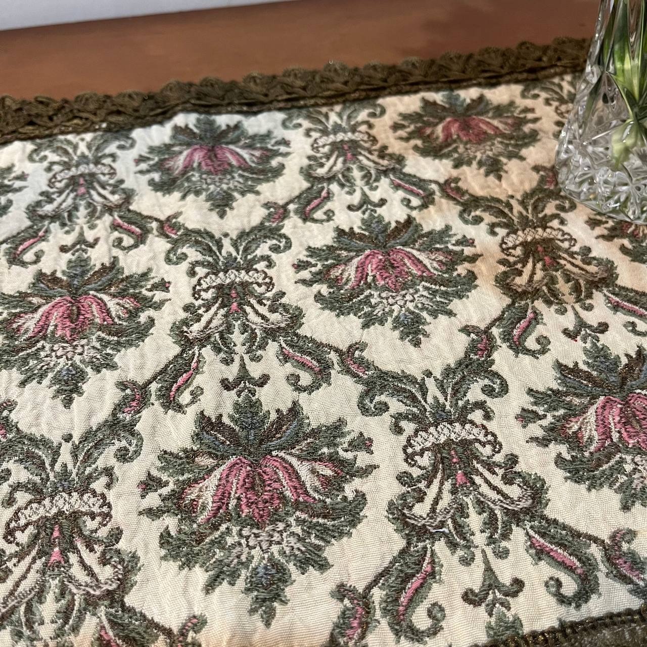 رومیزی قدیمی خارجی پارچه شنل گل برجسته زری دار قدمت دار با یراق سیمی