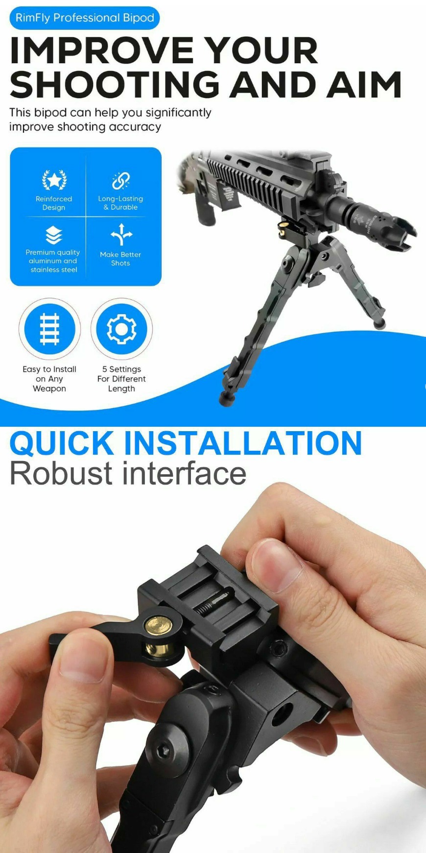 دوپایه تاکتیکال طرح آکواتک با قابلیت نصب روی ریل های پیکاتینی 22 میلی متری، مناسب نصب روی انواع سلاح های شکاری گلوله زن، خفیف، PCP و تفنگ های بادی.