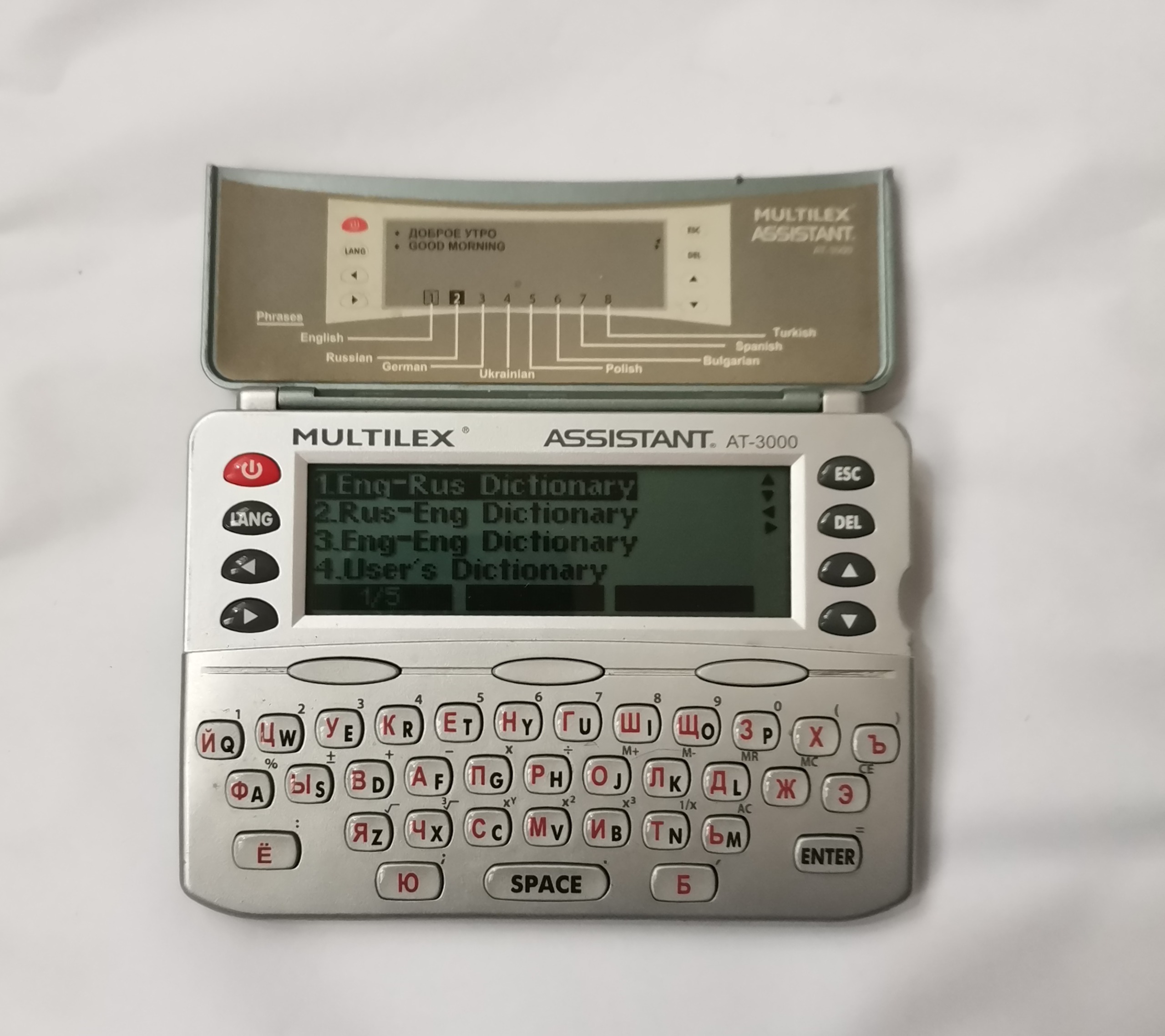 این مدل احتمالاً از اوایل 2000 میلادی (حدود 2000-2010) تولید شده و در کشورهای روسیزبان (روسیه، اوکراین و...) خیلی محبوب بود، چون قبل از فراگیر شدن گوشیهای هوشمند، این دیکشنریهای جیبی بهترین ابزار برای ترجمه سریع بودن.