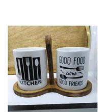 جا قاشقی سرامیکی دوقلو با زیره چوبی