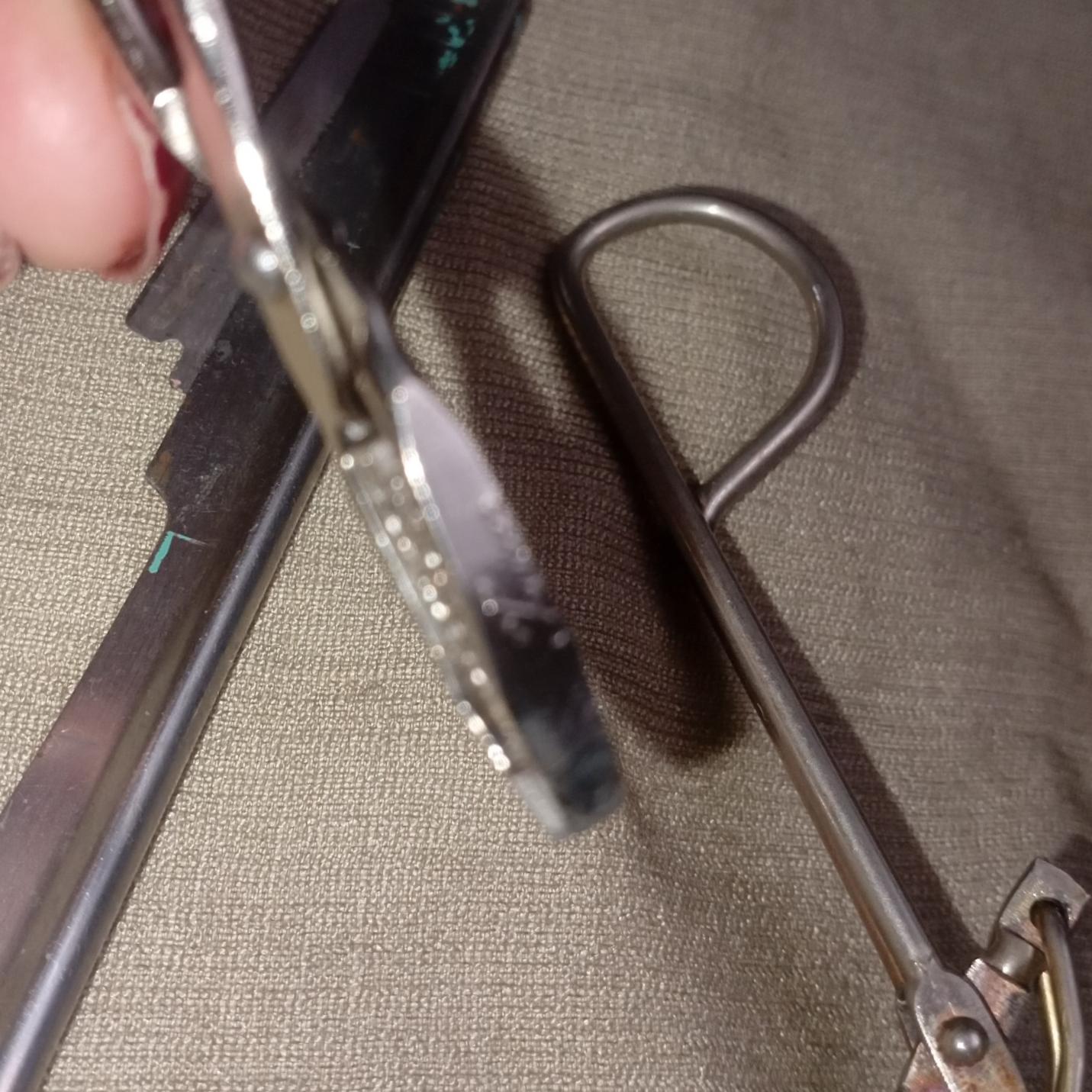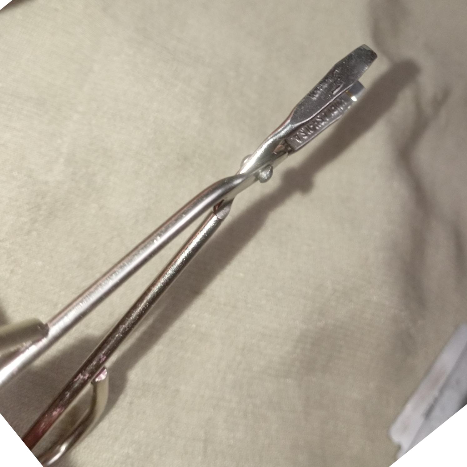 موچین مارک دار USA که اسم حک شده عکس گذاشتم ولی نمیتونم بخونم داخل هر دو طرف زد امریکا اونم حک شده سالم مشکلی نداره و تمیزه جنس خوب و جوندار بدون زدگی ولی باید درنظر داشت که خیلی قدیمی هست