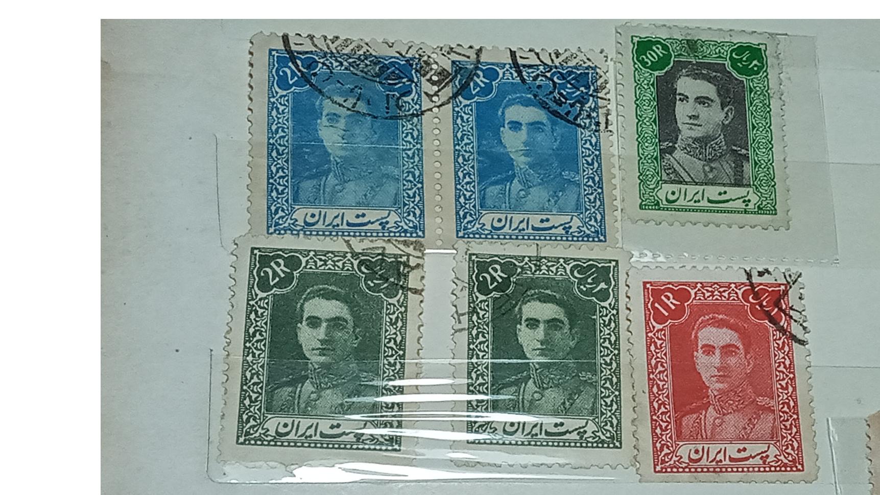 6 تمبر پستی محمد رضا بسیار زیبا وباارزش