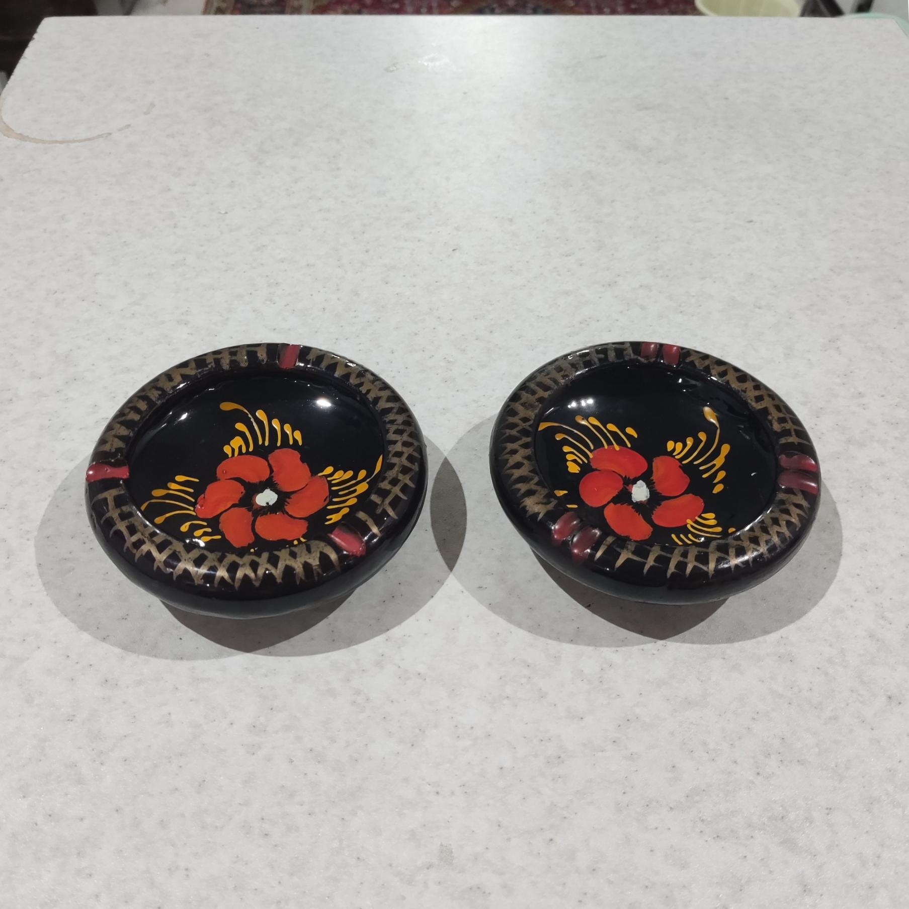 یک جفت زیرسیگاری قدیمی جنس سفالی نقاشی دست