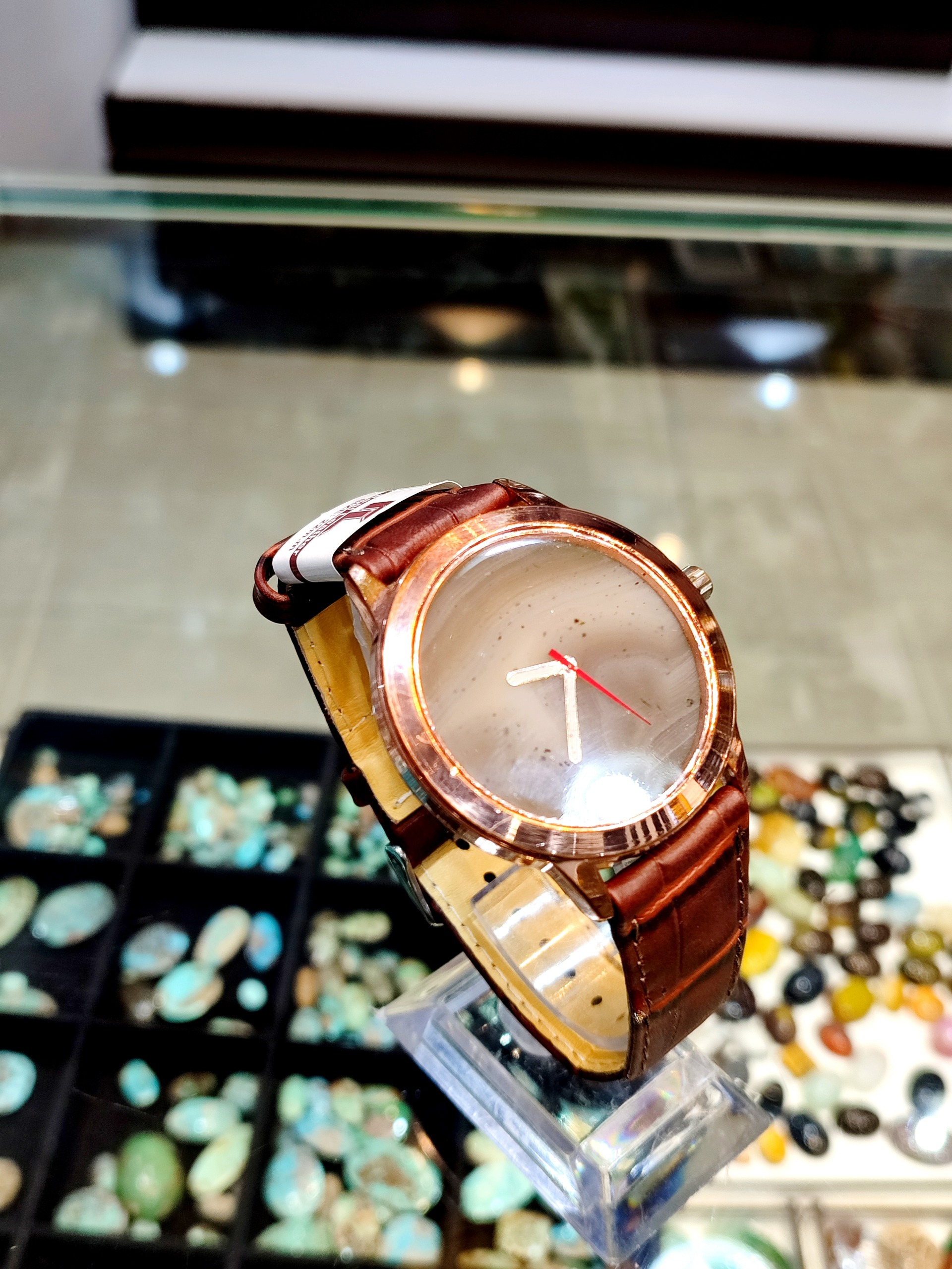 صفحه ساعت مربوطه از سنگ اصلی و عقیق سلیمانی فوق العاده خوشرنگ و شیک میباشد