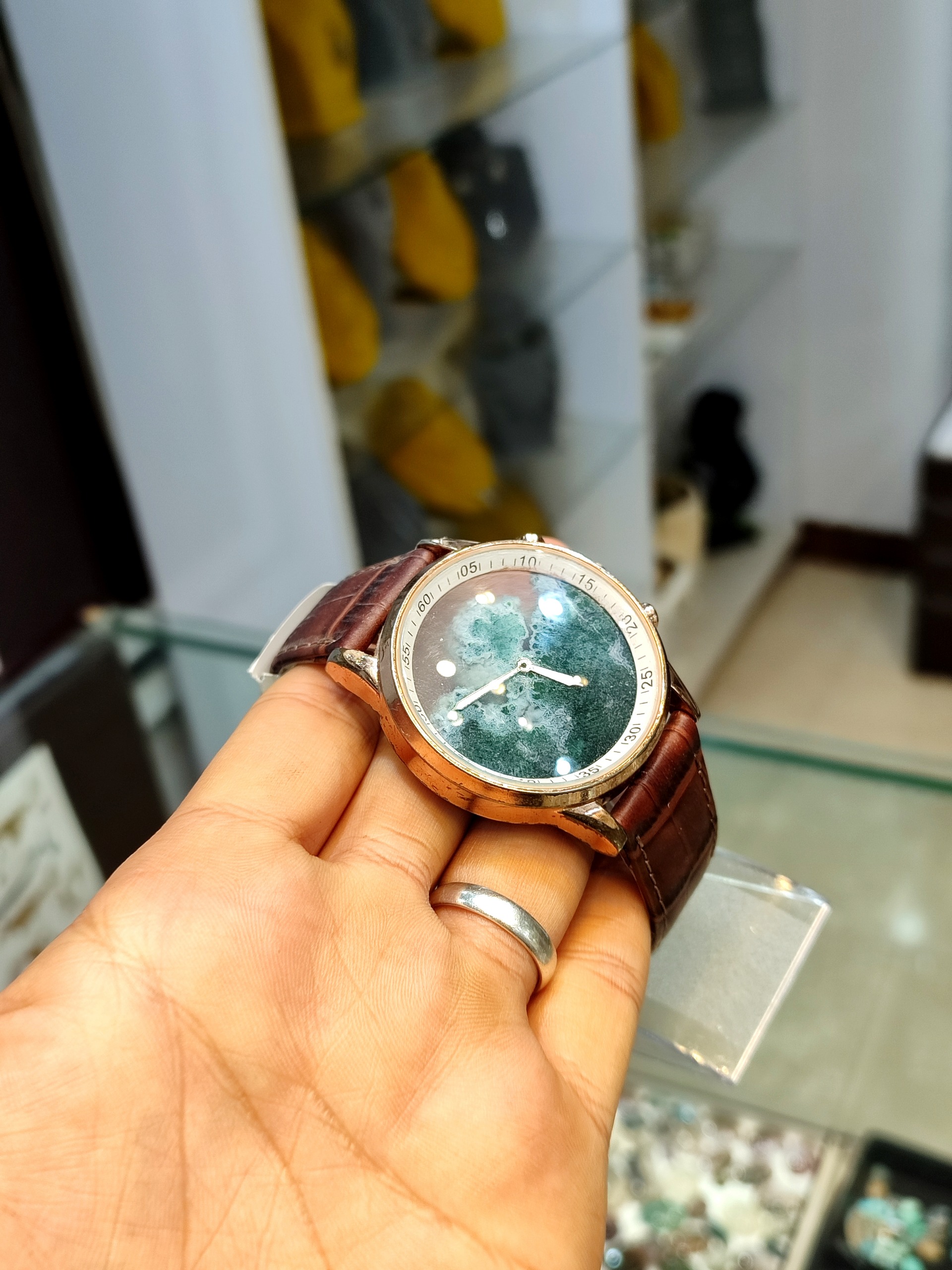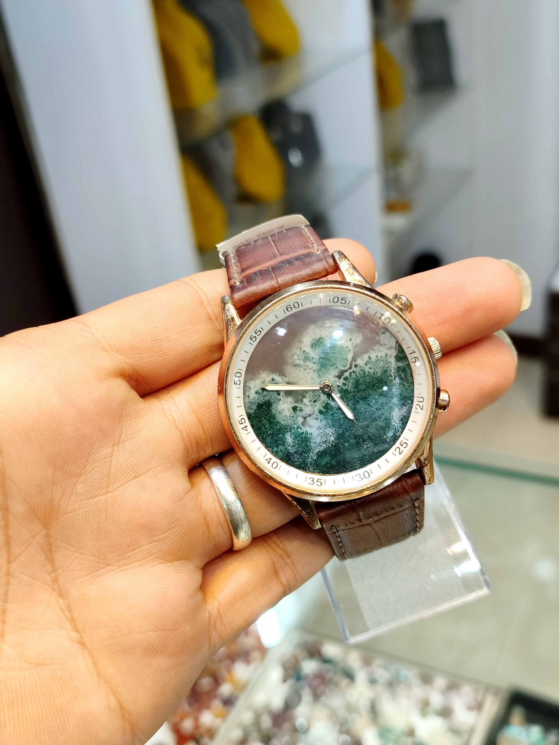 صفحه ساعت مربوطه از سنگ اصلی و عقیق سلیمانی فوق العاده خوشرنگ و شیک میباشد