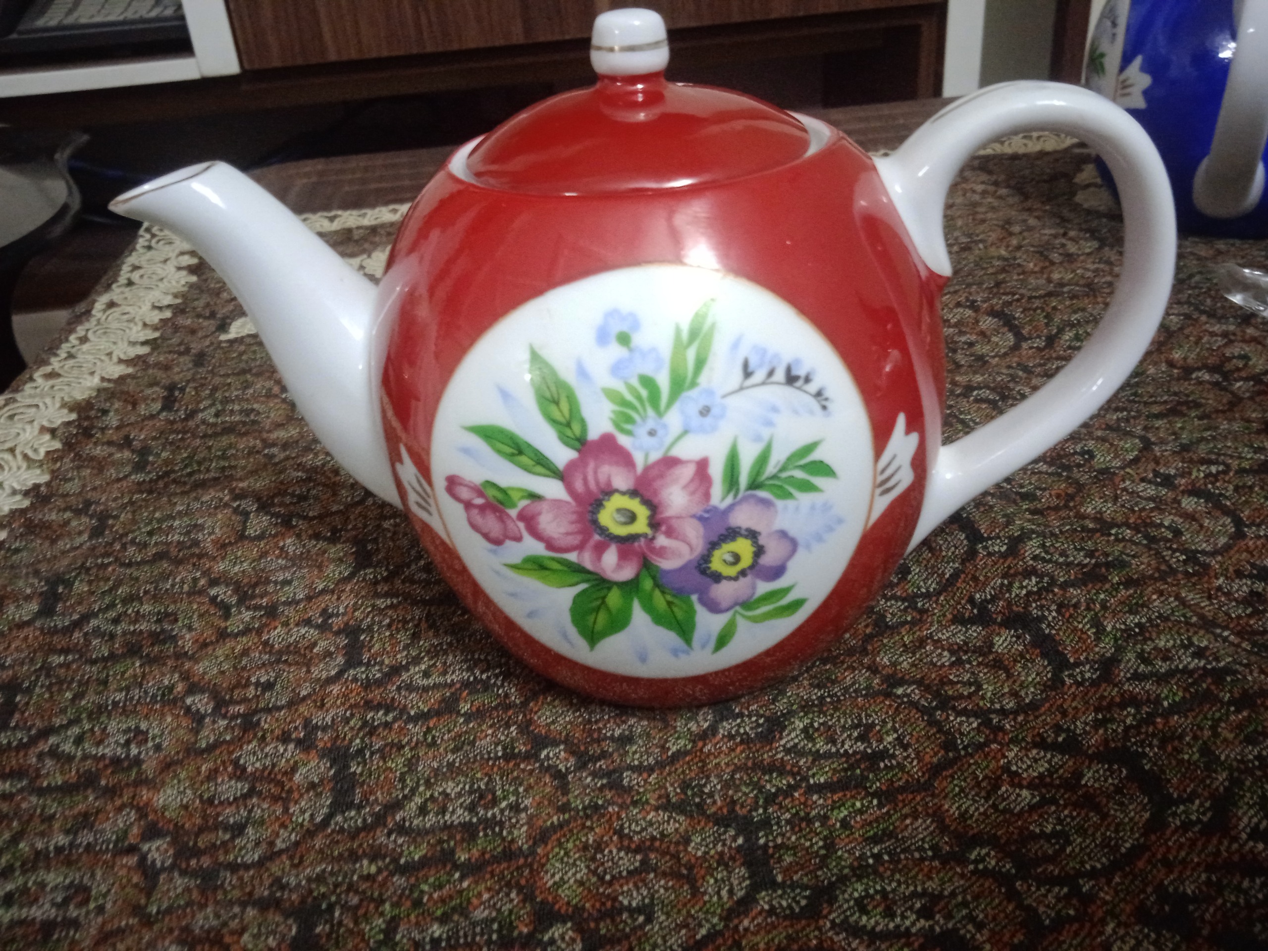 قوری قدیمی قرمز رنگ بامارک معتبرومارک گردنر
