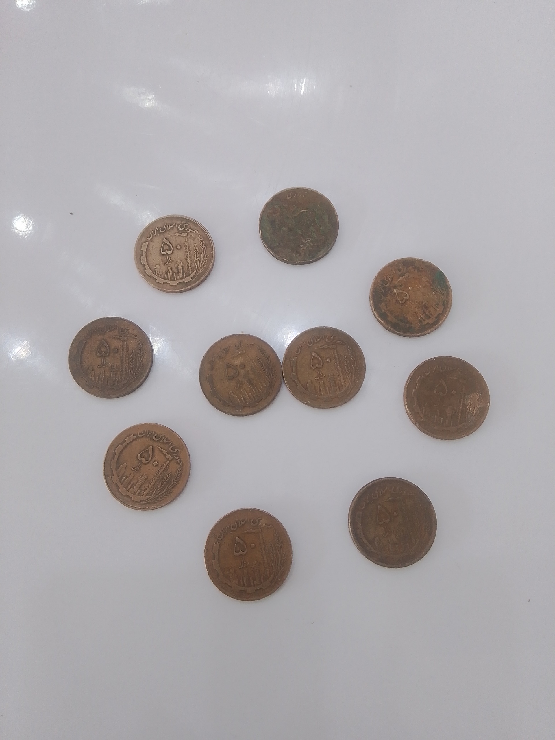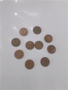 ده عدد سکه قدیمی  پنج ریالی  مسی