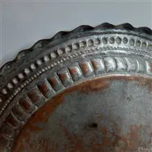 درود این دوری یا دیوار کوب مسی بسیار قدیمی بسیار تمیز ازش نگهداری شده و هیچ فرورفتگی و ضرب خوردگی نداره کمی کفش خط و خش ریز داره که مربوط به قدمت بالاش هست.