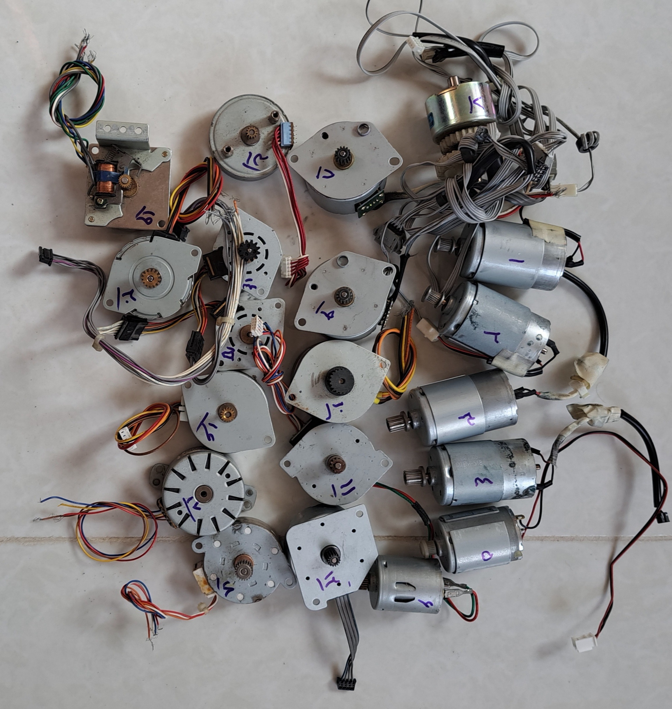 توضیح اینکه تعداد 20 عدد استپ موتور که خودم از روی دستگاههای پرینتر کپی فکس وغیره باز کردم با 12 ولت تست گرفتم موتورهایشان یک حرکت کوچک میزنند اما این موتورها ولتاژشان بالای 24 ولت است که امکان تست برایم وجود نداشت به همین صورت طبق عکس فروخته میشود قیمت 20 عدد باهم بعد از خرید ادعای لطفا نباشد در خرید دقت بفرمائید