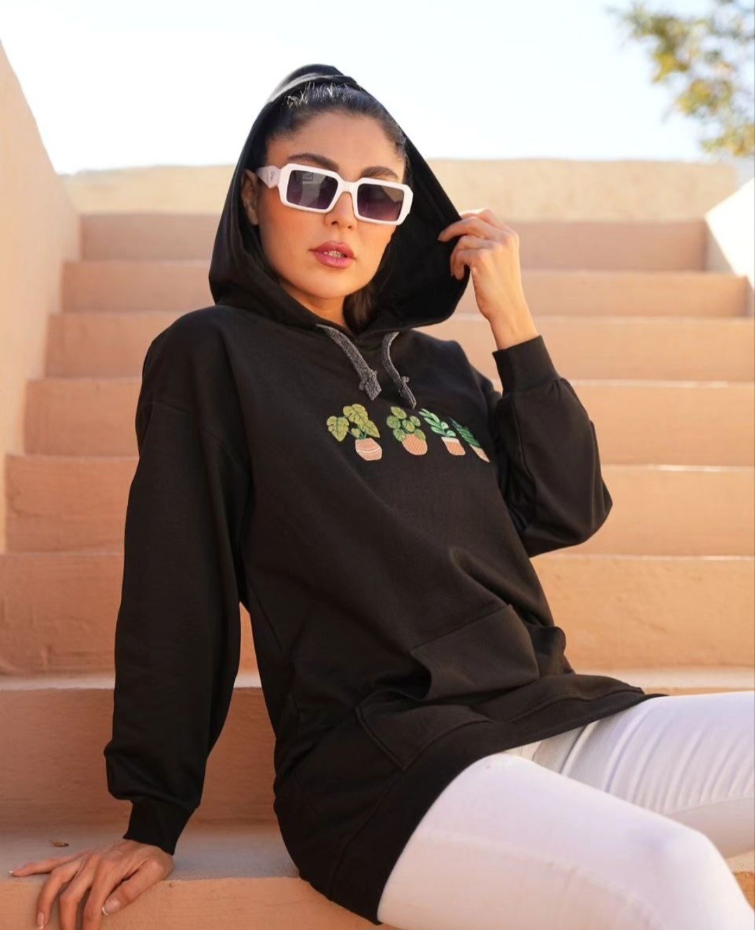 هودی دورس 3 نخ پنبه، با گلدوزی و برچسب ،مناسب سایز 36 تا 44 ،جیب دار ، کلاهدار
