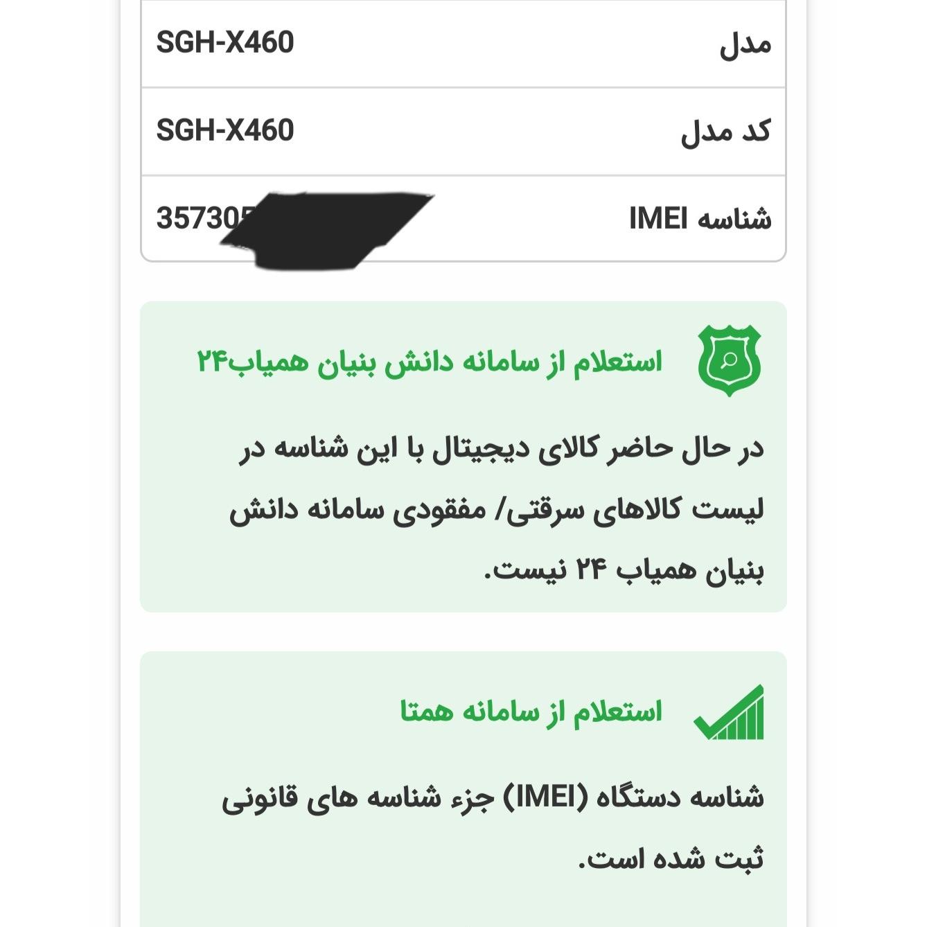 گوشی سامسونگ x460صحیح و سالم و ثبت شده در همتا داخل عکسها میتونید ببینید گوشی ریجستر قدیم میباشد و انتقال مالکیت لازم نداره باتری گوشی کمی ضعیف شده و سیمکارت همراه اول و رایتل فقط بالا میاره مدتیه بعضی مدلها سیمکارت ایرانسل بالا نمیارن فقط گوشی و شارژر برایدخریدار ارسال میشود قبل از خرید سوالی بود بپرسید چون بعد از خرید مرجوعی به هیچ عنوان پذیرفته نمیشود با تشکر