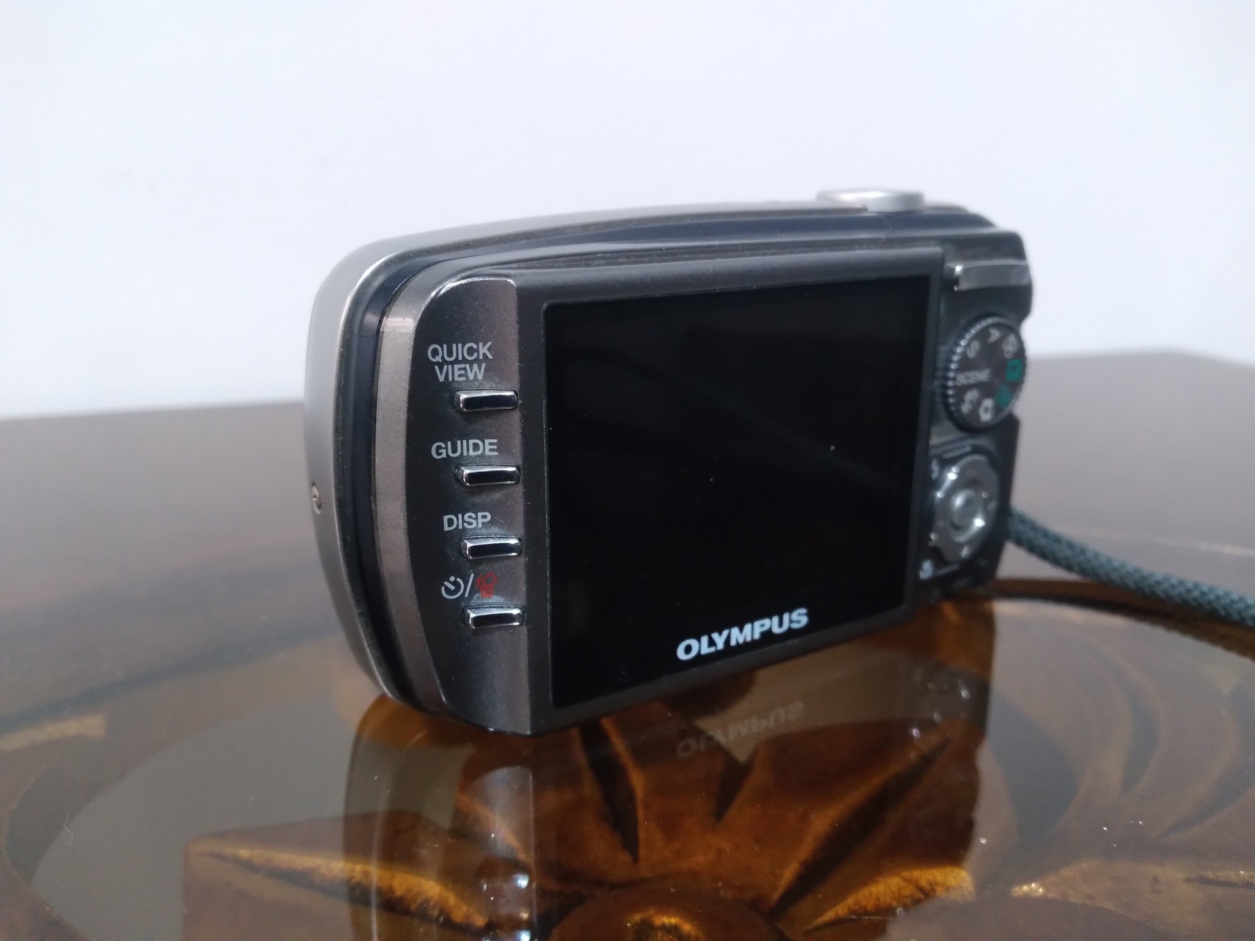 دوربین المپوس بسیارزیبا.دیجیتال .همراه باتری بدون شارژر.فقط یه رنگ پریدگی خیلی کوچک داره.