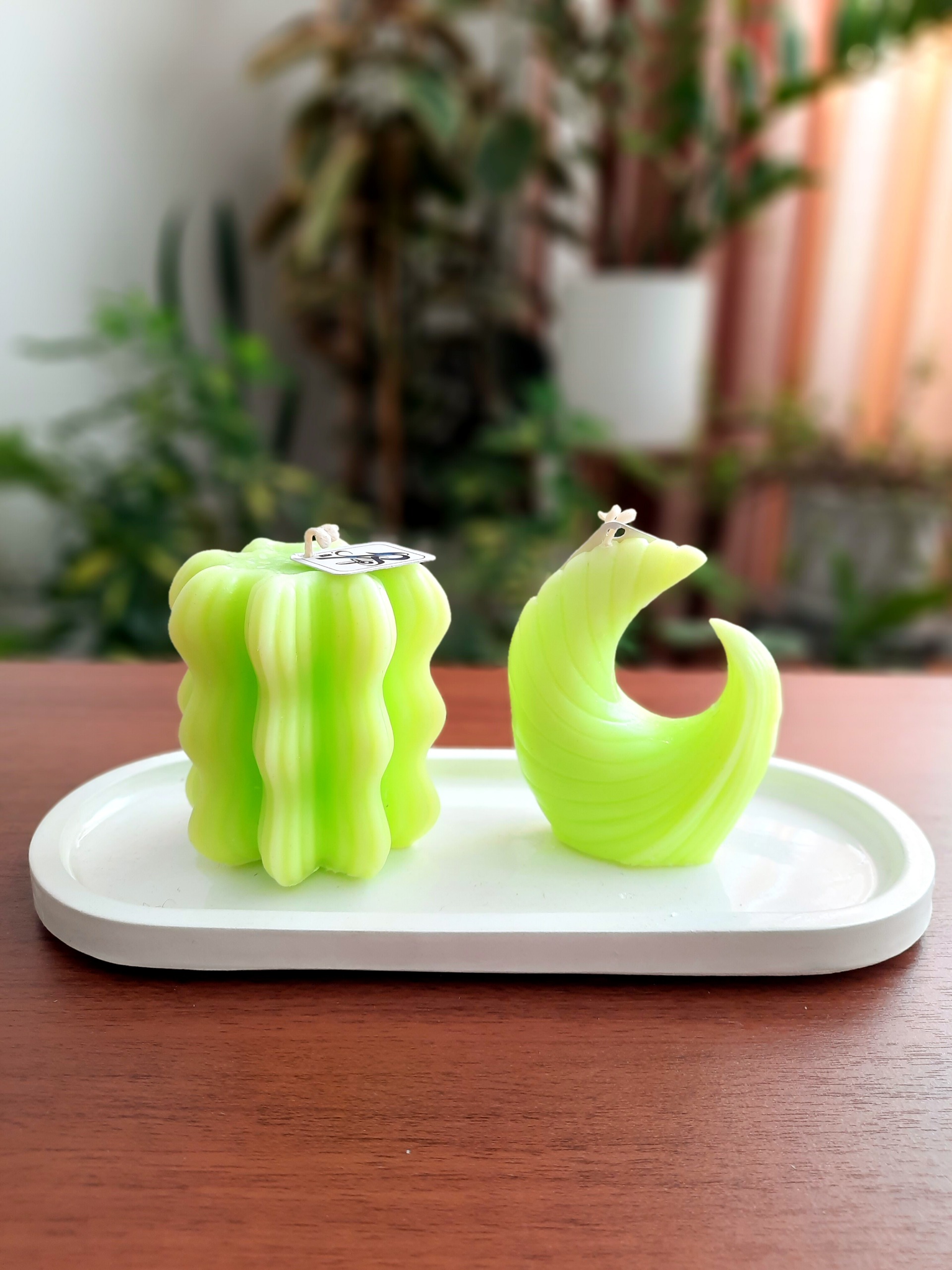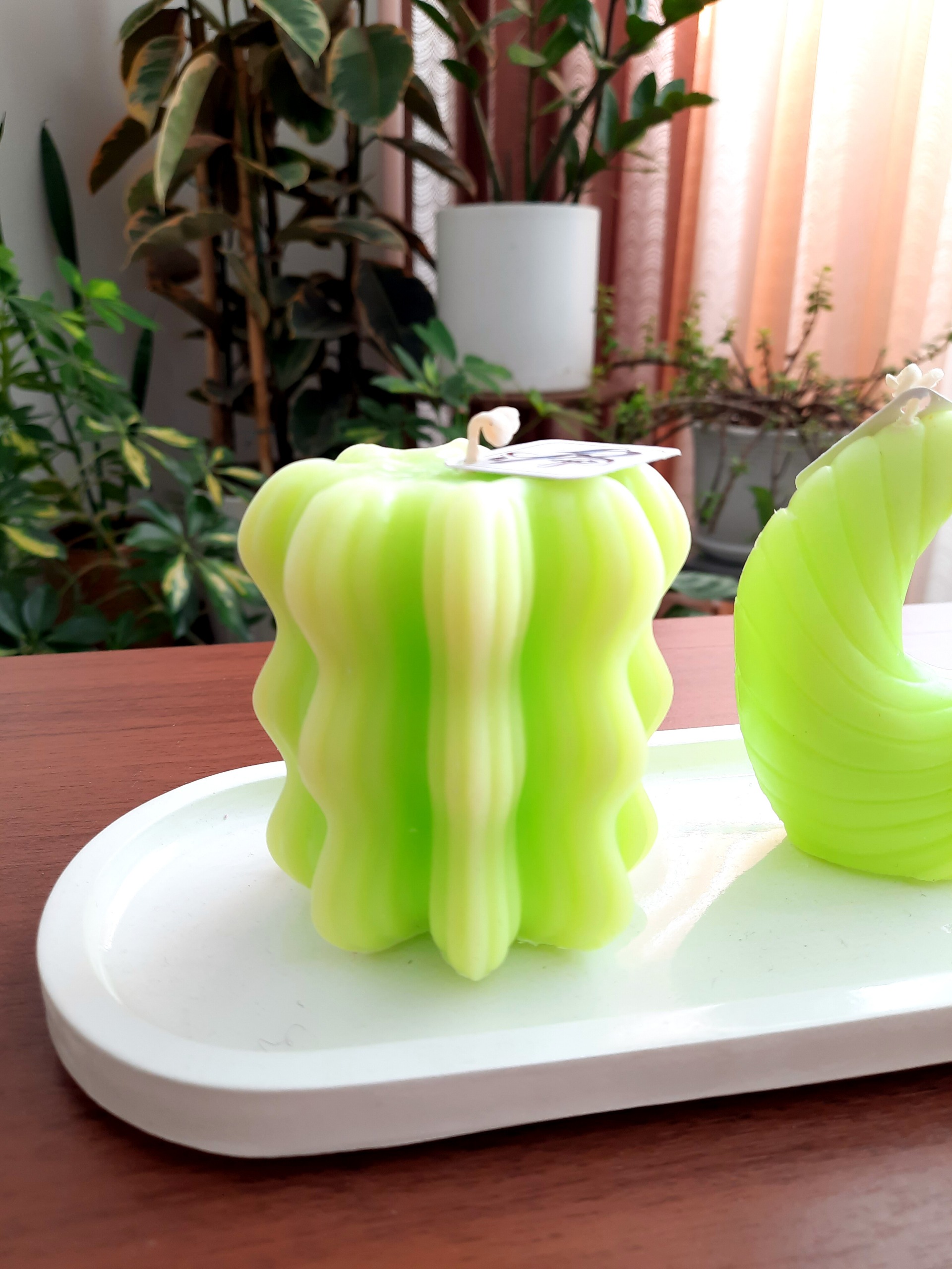 ست شمع دانهیل و استوانه موج موجی به رنگ سبز فسفری