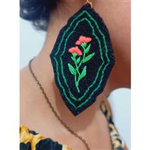 گوشواره نمدی گلدوزی شده مشکی رنگ لوزی شکل فوق العاده زیبا در ابعاد 8*5