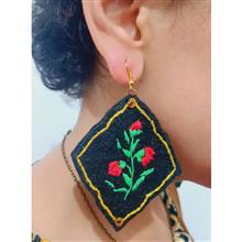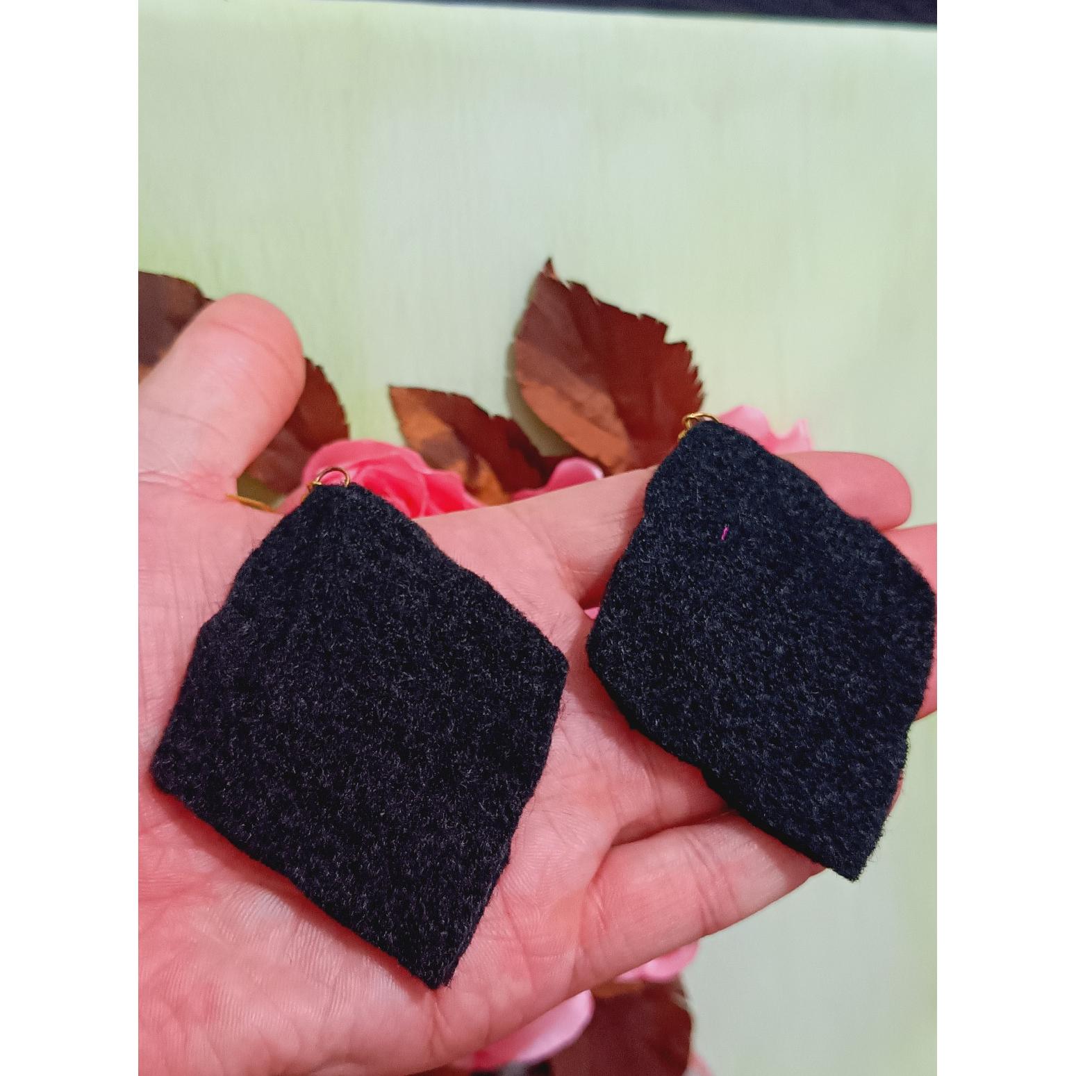 گوشواره نمدی گلدوزی شده مشکی رنگ لوزی شکل در ابعاد 8.5*6